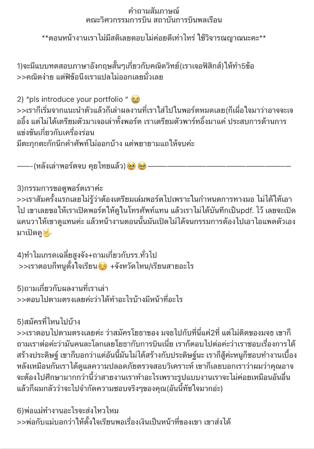 คำถามสัมภาษณ์ วิศวกรรมการบิน สถาบันการบินพลเรือน#dek69