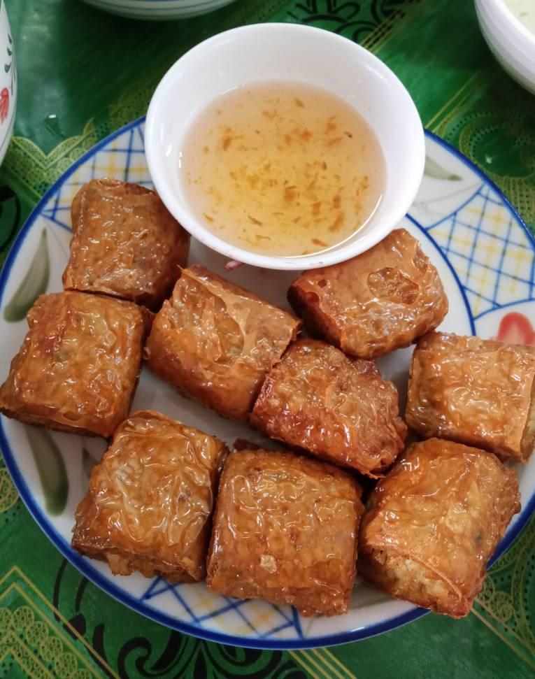 มีลูกชิ้นชุบแป้งทอด เกือบเป็นปลาระเบิดแต่ยังไม่ระเบิด มีเกี๊ยวห่อไข่นกกระทาด้วย เร้าใจ ขนมเบื้องชิ้นเล็ก กินง่ายดี เจ๊จ่ายฮะ ผมขี่รถพาไป ก็ได้กินฟรีเลย