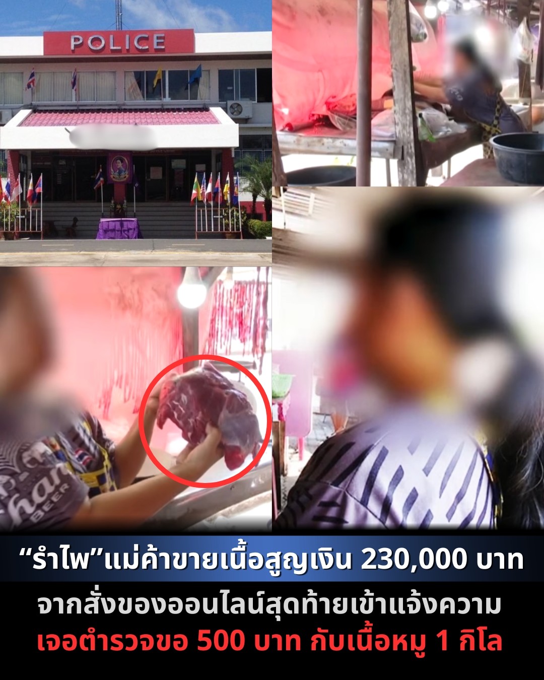 เคสโรงพักเพิ่มอีกราย “รำไพ” แม่ค้าขายเนื้อ สั่งของออนไลน์แล้วไม่ได้ของ ตัดสินใจเข้าแจ้งความ สุดท้ายโดนตำรวจ คิดค่าทำเอกสาร 500 บาท ก่อนบอกให้ลูกน้องขับรถมาเอาเนื้อหมูเพิ่ม 1 กิโล