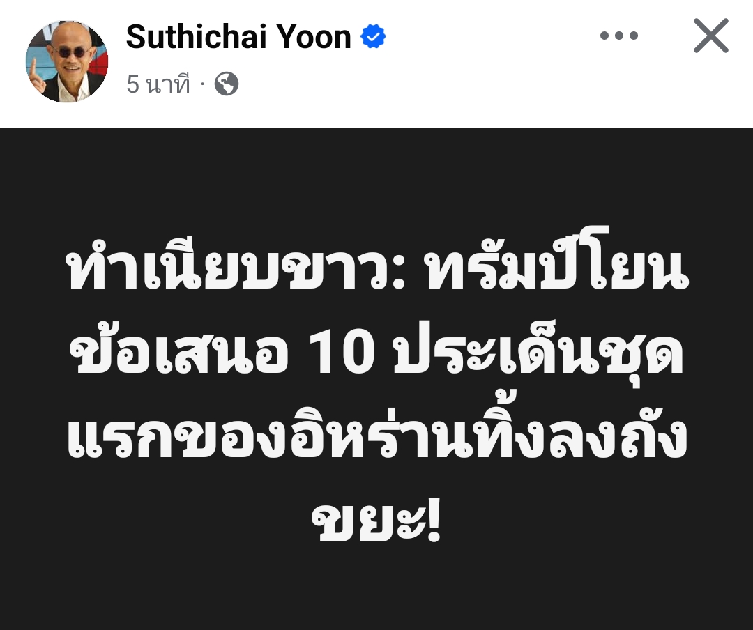 จบนะ หยุดยิงการละคร โดนทรัมป์หลอกซ้ำๆ วันนี้ทำเนียบขาว: ทรัมป์โยนข้อเสนอ 10 ข้อของอิหร่านทิ้งลงถังขยะ