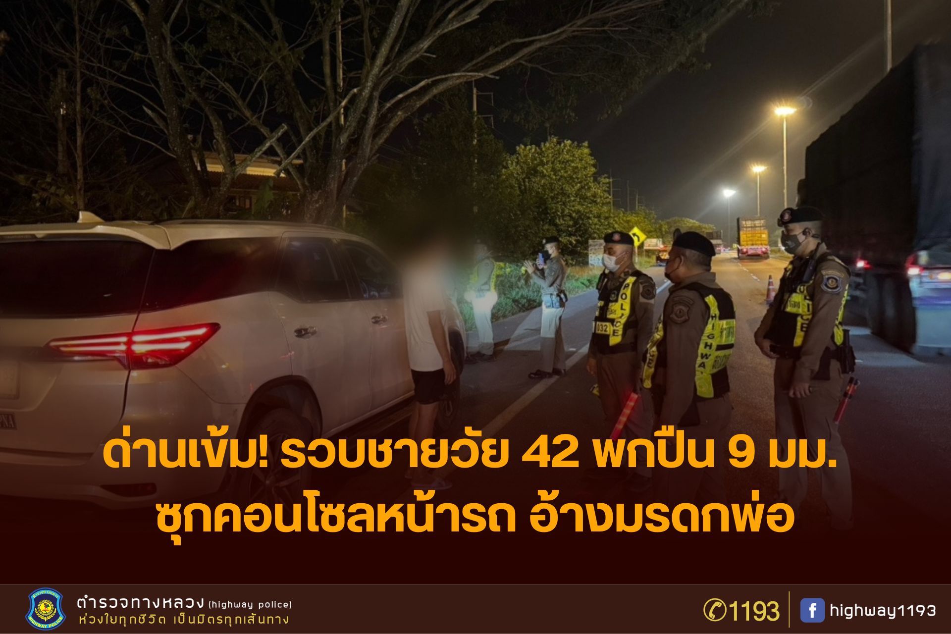 ชายอายุ 42 ปี คนขับยอมรับว่ามีปืนอยู่ในรถ จึงนำตรวจสอบ พบเป็นปืนกึ่งอัตโนมัติ พร้อมกระสุนบรรจุในซอง