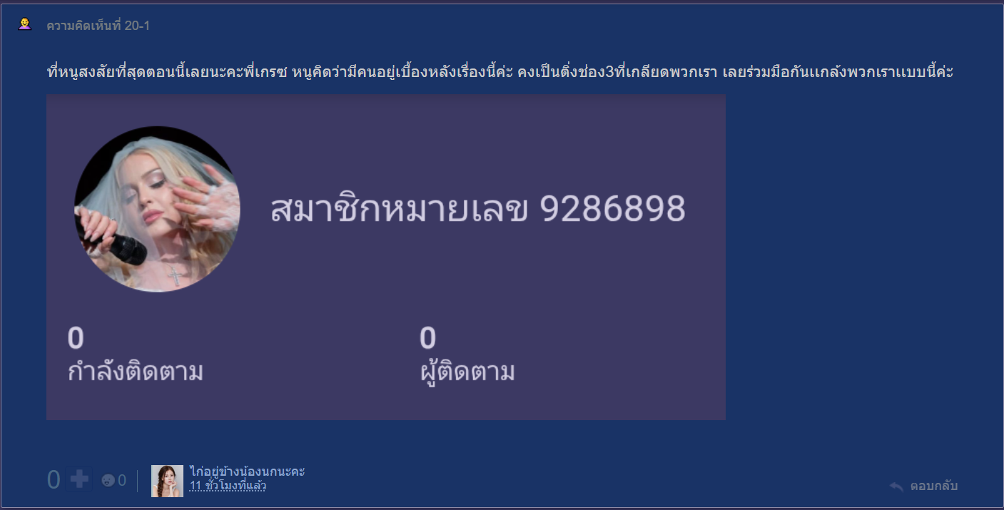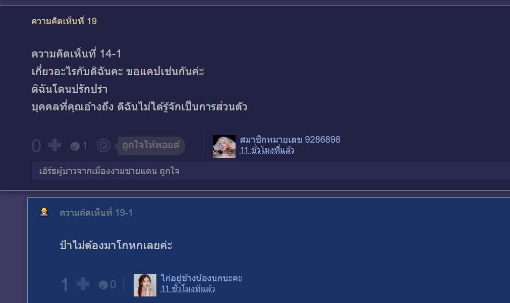 ติ่งละครช่องนึง มีปัญหากับติ่งต่างช่อง แล้วพาลพาดพิงกล่าวหาบุคคลอื่นมีความผิดนะคะน้อง ดิฉันไม่ใช่ คู่กรณีของคุณค่ะ