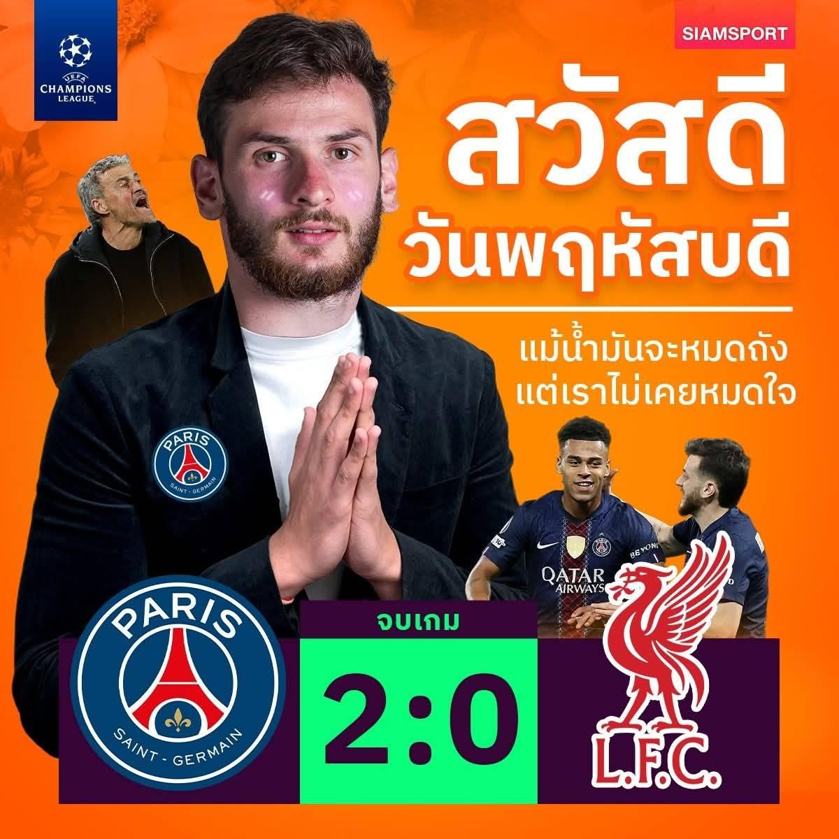 ลิเวอร์พูล แพ้แบบไม่รูปทั้งสกอร์และแท็กติก หลังออกไปโดน ปารีส แซงต์-แชร์กแมง สอย 0-2 ในศึกยูฟ่า แชมเปี้ยนส์ ลีก รอบก่อนรองชนะเลิศ เลกแรก เมื่อวันพุธที่ 8 เมษายนที่ผ่านมา โดยแมตช์นี้แข้ง "หงส์แดง" ฟอร์มร่วงกราวรูดแทบทั้งทีม โดยเฉพาะเกมรุกที่ไม่ได้สร้างปัญหาให้กับเจ้าบ้านเลย ถือเป็นอีกหนึ่งแมตช์ที่น่าผิดหวังสำหรับการกุมบังเหียนของ อาร์เน่อ สล็อต 🔴