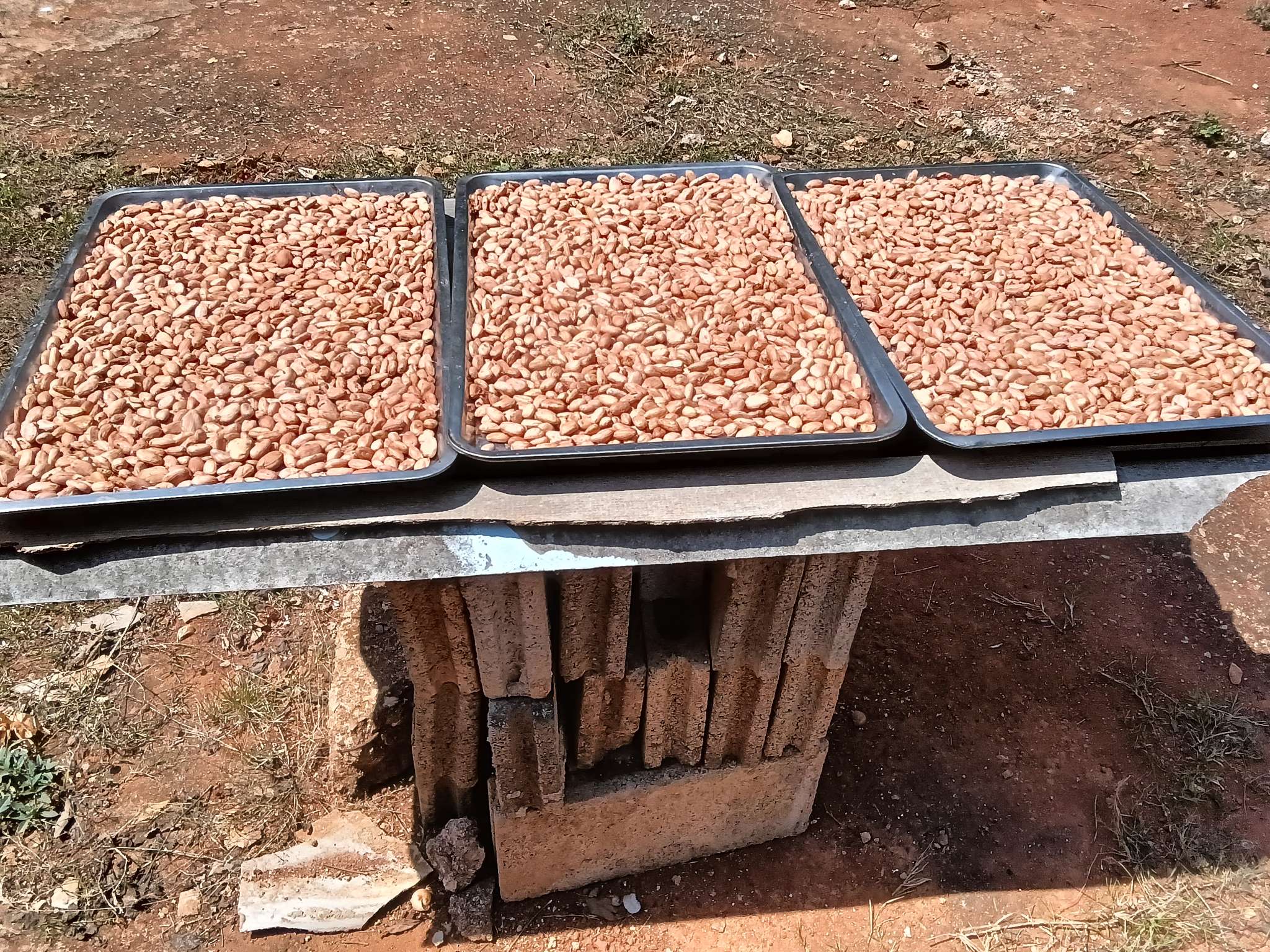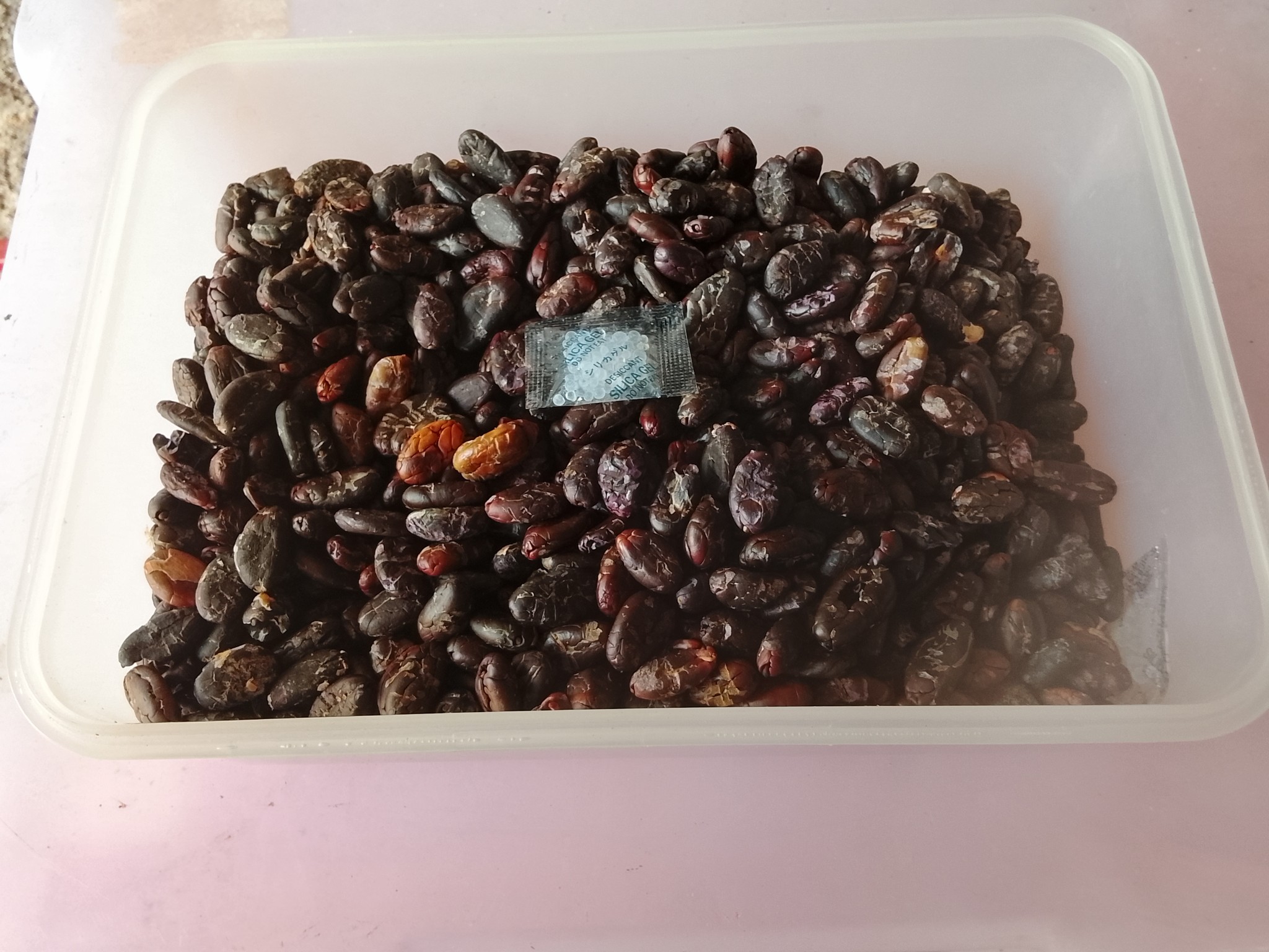 1. นำเม็ดคาเคาไปตากแดดธรรมชาติสัก 3-4 วัน พลิกเม็ดเพื่อให้ฟองน้ำที่หุ้มเม็ดแห้งไม่จับตัวกัน วันละสองสามครั้ง