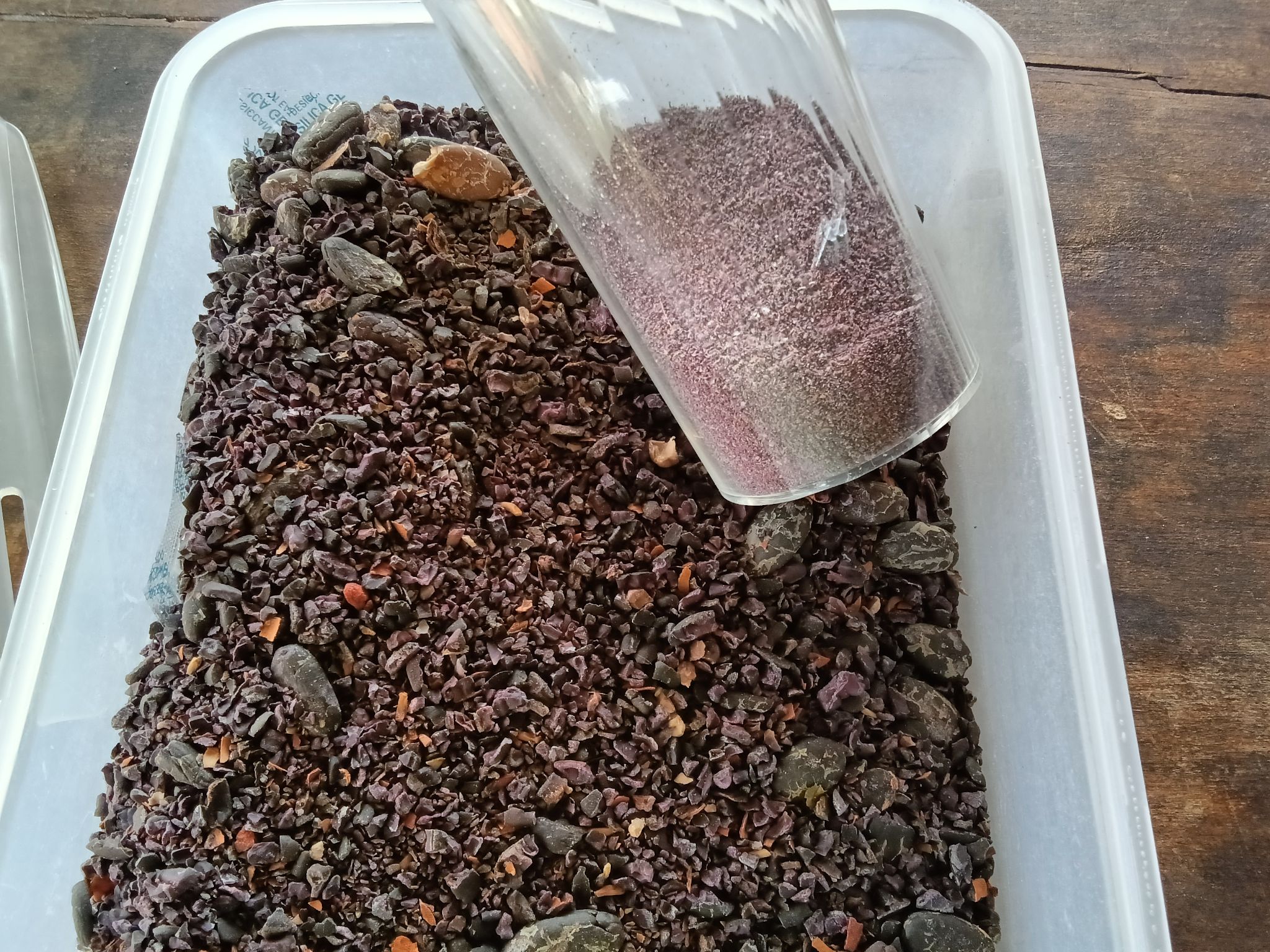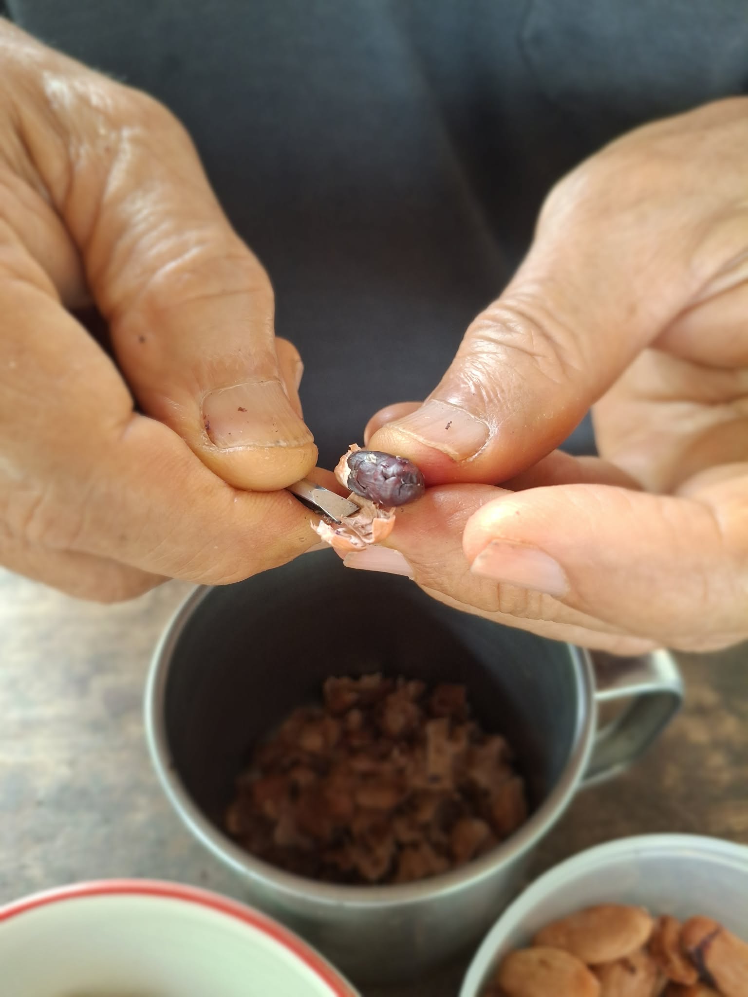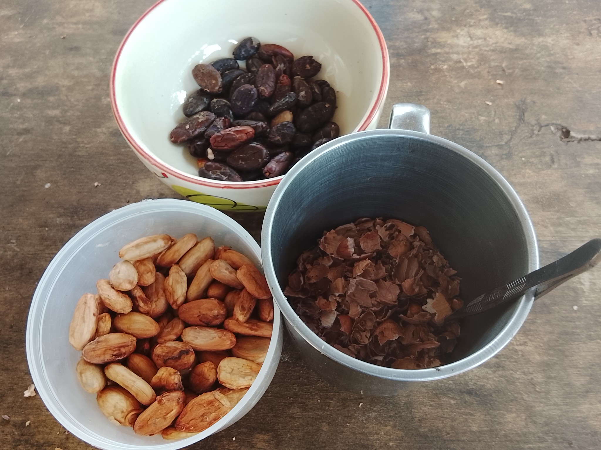 หลังจากแยกน้ำที่หมักคาเคาไปบ่มทำไวน์แล้ว ขั้นตอนต่อไปคือการเตรียมคาเคาดิบเพื่อเป็นอาหารสุขภาพต่อไป
