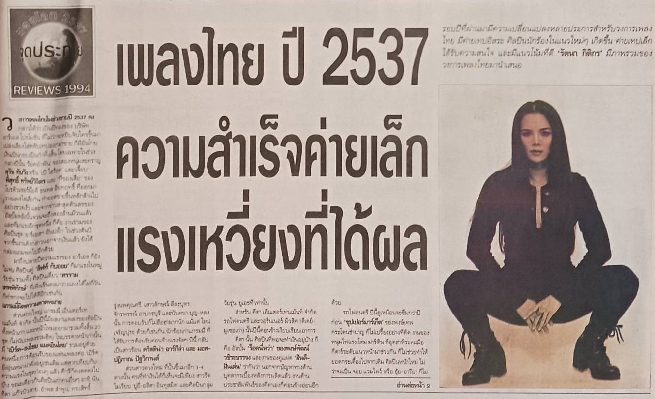 สรุปที่สุดวงการเพลงปี 2537 "ความสำเร็จค่ายเล็ก แรงเหวี่ยงที่ได้ผล" (จาก นสพ.กรุงเทพธุรกิจ)