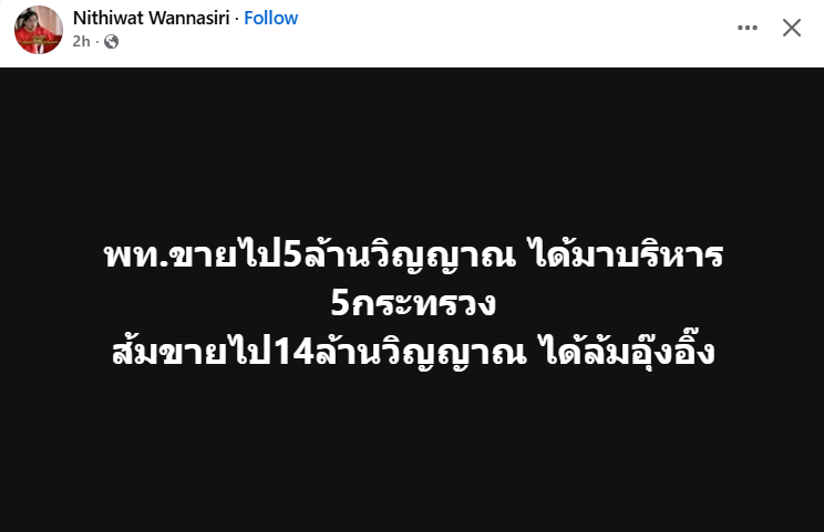 'เต้น' ถาม 'เท้ง' กล่าวหาเพื่อไทยขายวิญญาณ ย้อน แล้วที่พรรคส้มทำ MOA เอาวิญญาณใครไปขาย . วันที่ 9 เมษายน นายณัฐวุฒิ ใสยเกื้อ อดีตผู้ช่วยหาเสียงพรรคเพื่อไทย โพสต์ข้อความในเฟซบุ๊ก ระบุว่า เพิ่งเห็นค