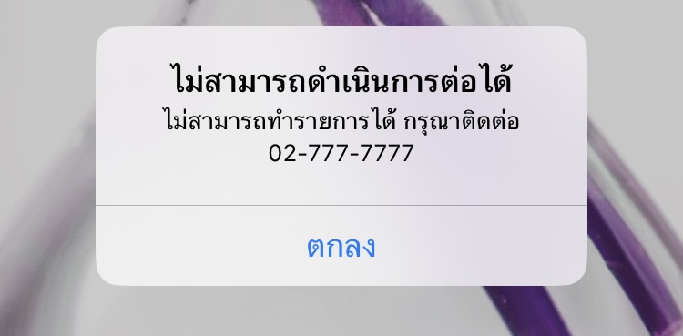 ไม่สามารถดำเนินการต่อได้ ไม่สามารถทำรายการได้ กรุณาติดต่อ 02-777-7777