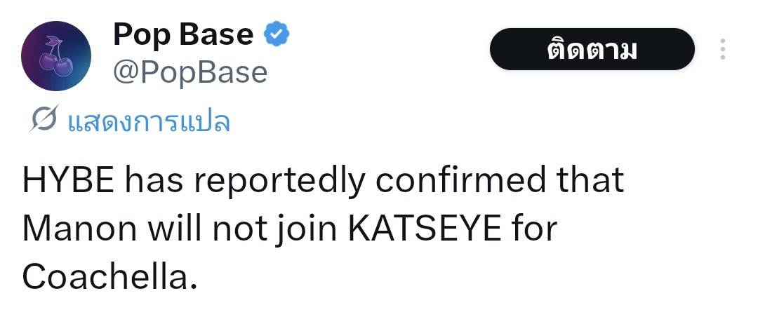มีรายงานจาก HYBE Entertainment ยืนยันว่า Manon จะไม่เข้าร่วมแสดงกับ KATSEYE ในเทศกาลดนตรี Coachella 2026