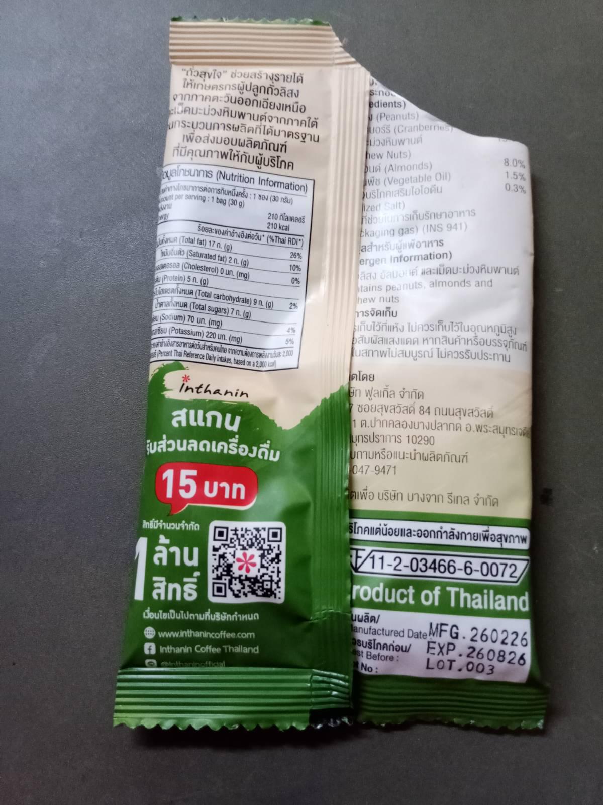 ด้านหลัง มี QRCode สแกนรับส่วนลดเครื่องดื่ม Inthanin ด้วย