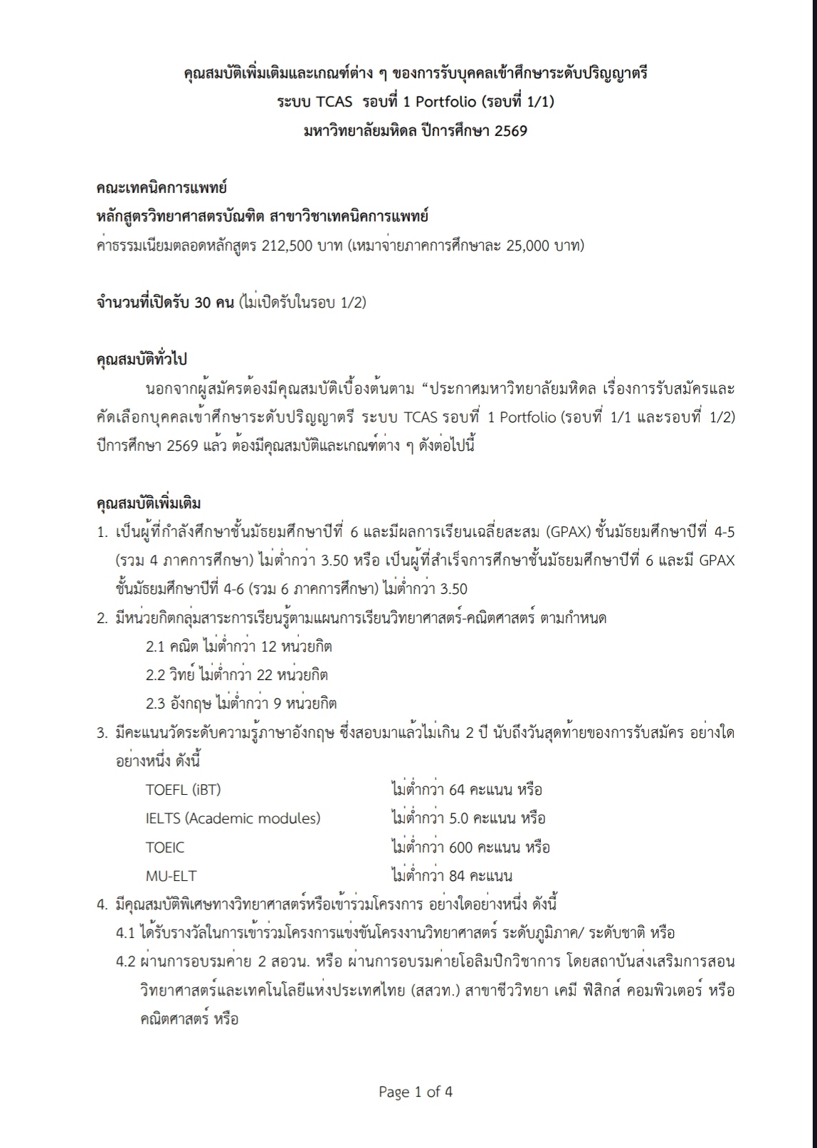 คะแนน 7 วิชาสามัญ มีสิทธิ์จะเข้าเทคนิคการแพทย์ มหิดล ได้มั้ยครับ