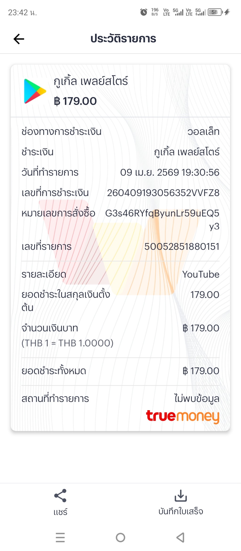 เลขคำสั่งซื้อ69d6ca447e597d00015ff9a5 เลขที่รายการ 50052829985784