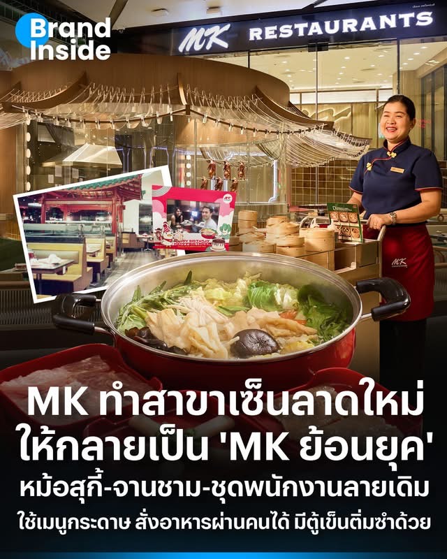 ไม่ว่าจะเป็นแท็บแล็ตสั่งอาหาร บริการส่งอาหารด้วยหุ่นยนต์ หรือแม้แต่เมนูที่เปลี่ยนแปลงไปตามกาลเวลา แต่เหมือน MK จะรู้ว่าเราคิดถึง จึงได้ปิดปรับปรุงสาขาเซ็นทรัลลาดพร้าว แล้วแปลงร่างให้ย้อนกลับไปสู่อดีต