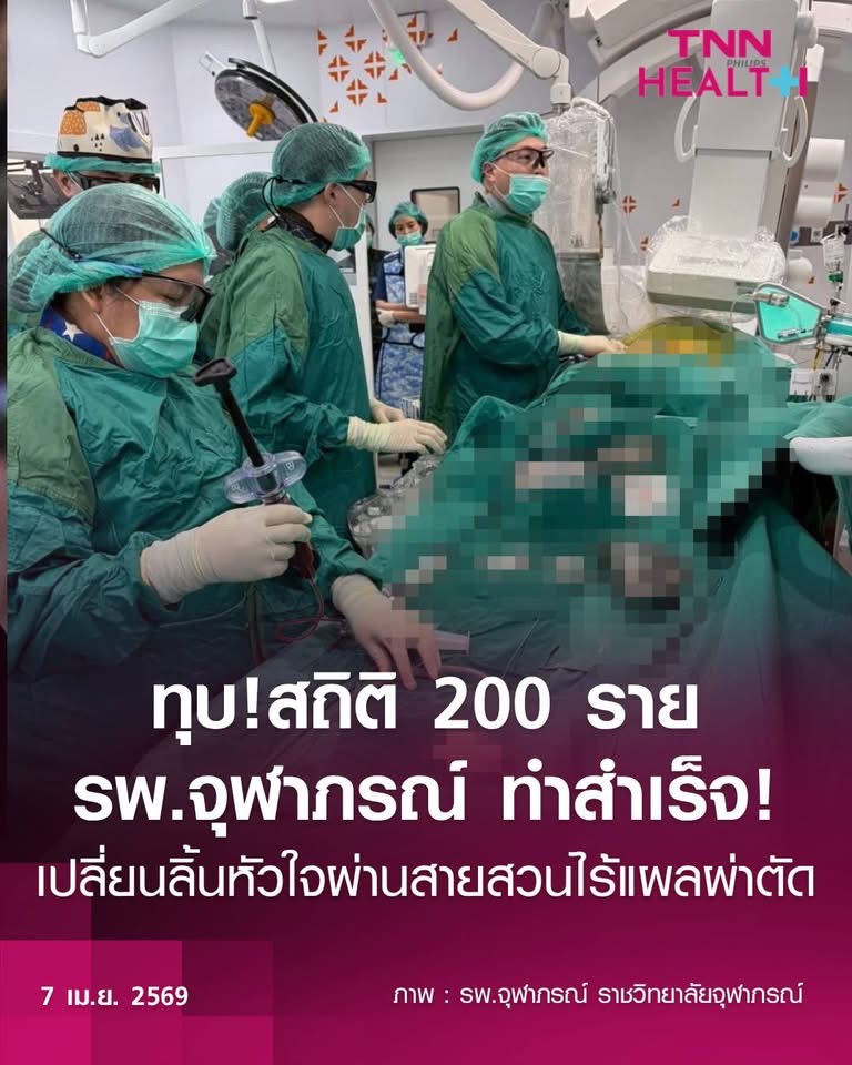 วันที่ 7 เมษายน 2569 ศูนย์หัวใจและหลอดเลือด โรงพยาบาลจุฬาภรณ์ ราชวิทยาลัยจุฬาภรณ์ ตอกย้ำความเป็นเลิศด้านการรักษาโรคหัวใจและหลอดเลือด ประกาศความสำเร็จในการรักษาผู้ป่วยภาวะลิ้นหัวใจเอออร์ติกตีบ ด้วยเทคโนโลยี TAVR (Transcatheter Aortic Valve Replacement) หรือการเปลี่ยนลิ้นหัวใจเอออร์ติกผ่านสายสวนโดยไม่ต้องผ่าตัด ครบ 200 เคส มุ่งเน้นการรักษาที่ปลอดภัย แผลเล็ก เจ็บน้อย และฟื้นตัวไว เพื่อให้ผู้ป่วยกลับไปใช้ชีวิตตามปกติได้รวดเร็วยิ่งขึ้น