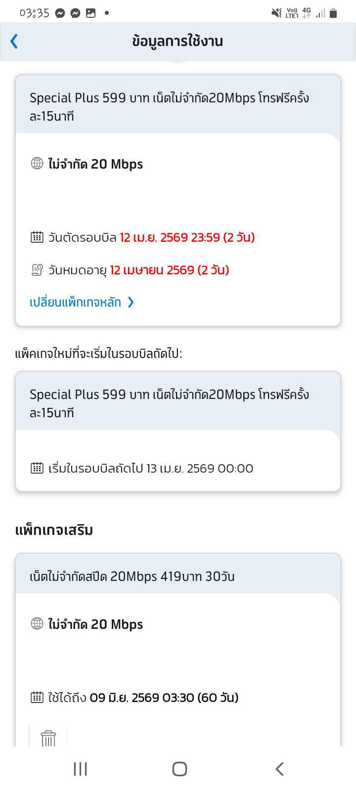เราอยากเปลี่ยนแพคเกจหลักเลยกดปุ่มเปลี่ยนแพคเกจหลักสีฟ้าๆตามในรูปค่ะ แต่พอกดเปลี่ยนแล้วตอนแรกมันไม่ขึ้นอะไรเลยเราก็เลยเข้ากดซ้ำไปอีกรอบนึงจากนั้นมันก็ขึ้นเป็นแพ็คเกจเสริมให้ค่ะ ตอนนี้ยอดที่ต้องชำระรวมแล้วพันกว่า ติดต่อพนักงานก็ไม่ได้ต้องไปศูนย์อย่างเดียวเลยใช่ไหมคะ โทร 1678 แล้วระบบแจ้งว่าหมายเลขเรามีการใช้ค่าบริการเกินวงเงินต่อเดือน(สามารถโทรเบอร์ไหนเพื่อติดต่อพนักงานแทนได้ไหมคะ) ทักไลน์ไปก็ไม่มีการตอบกลับ😭😭😭