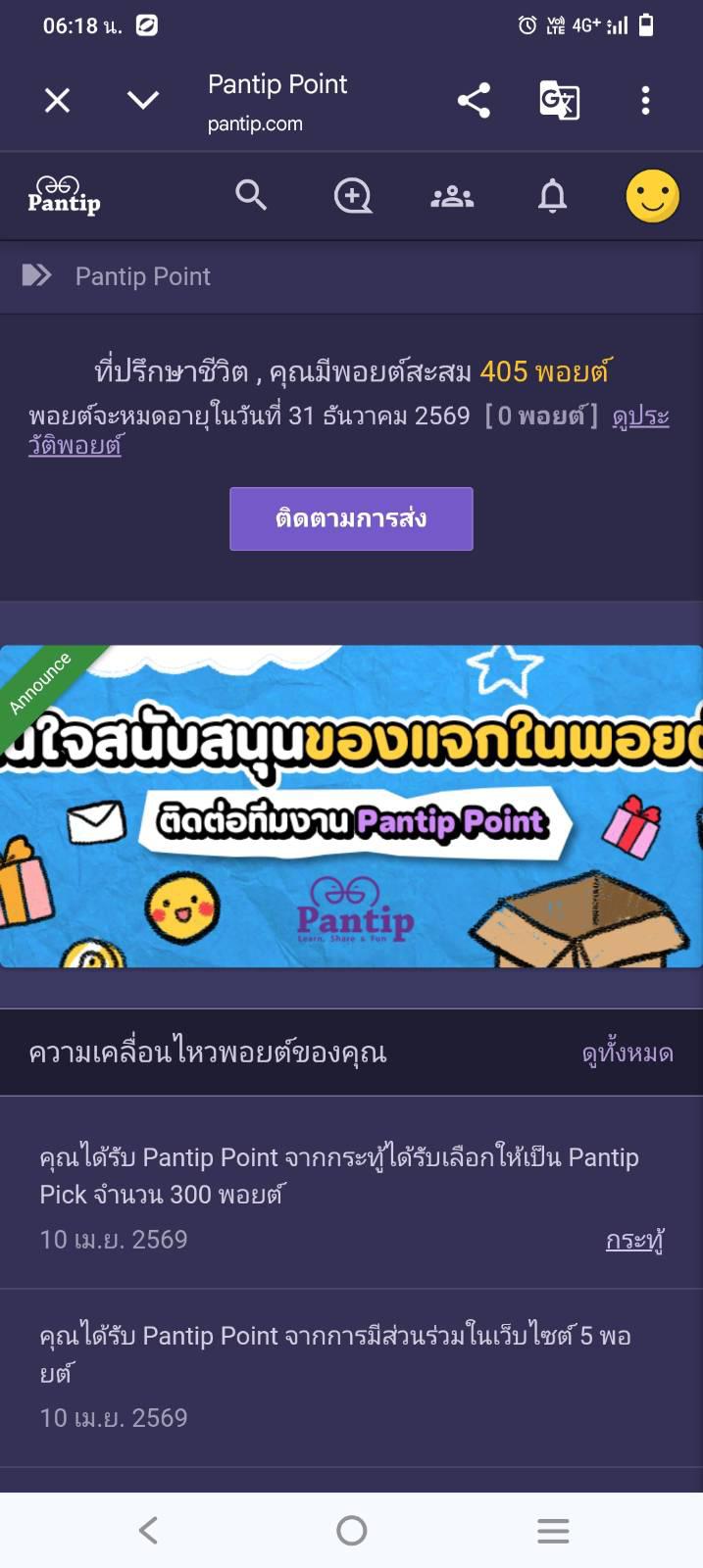 พันทิป Point คืออะไร https://pantip.com/point 7/8/68 ได้พอยด์เพิ่ม