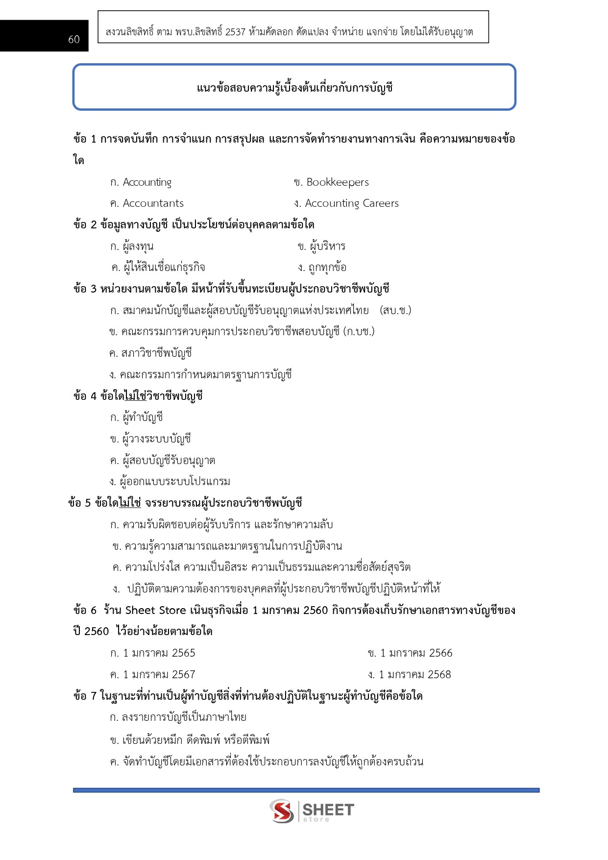 - แนวข้อสอบความรู้เบื้องต้นเกี่ยวกับการบัญชี