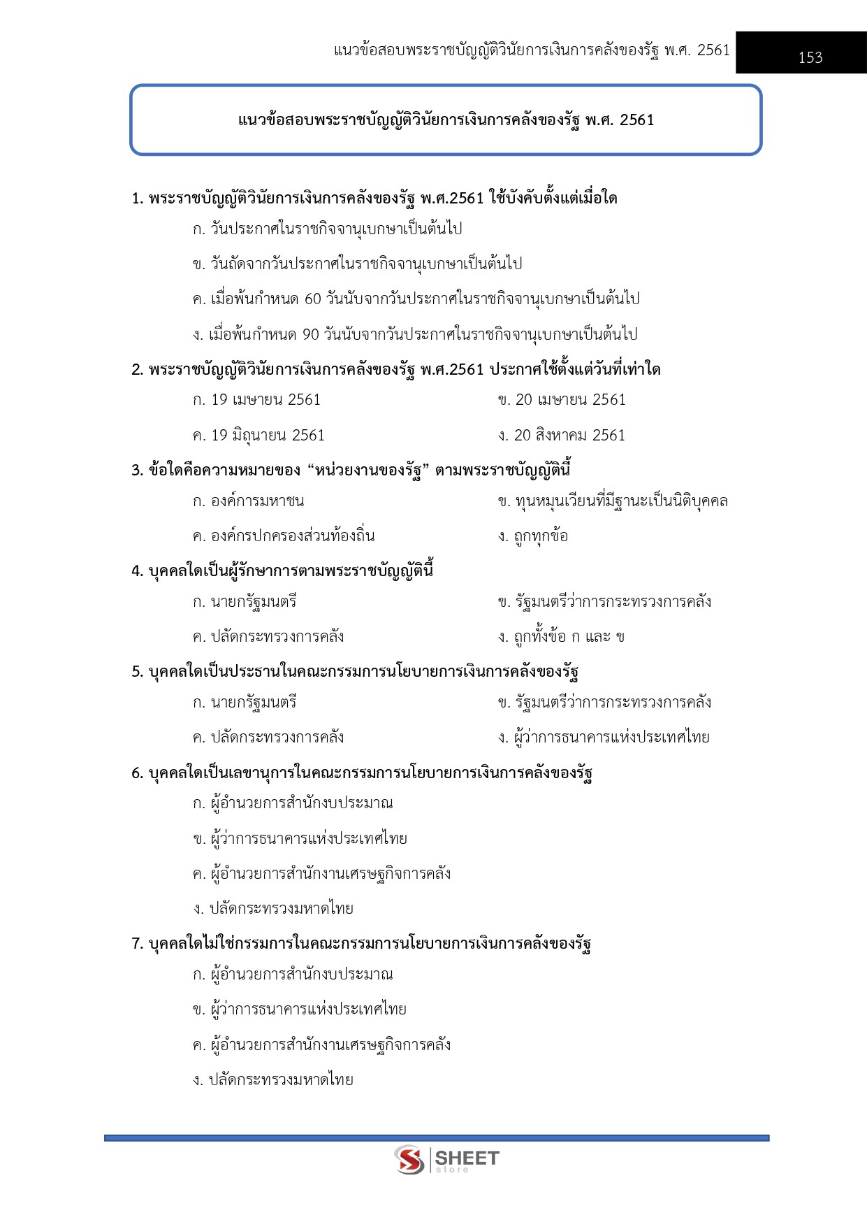 - แนวข้อสอบพระราชบัญญัติวินัยการเงินการคลังของรัฐ พ.ศ. 2561