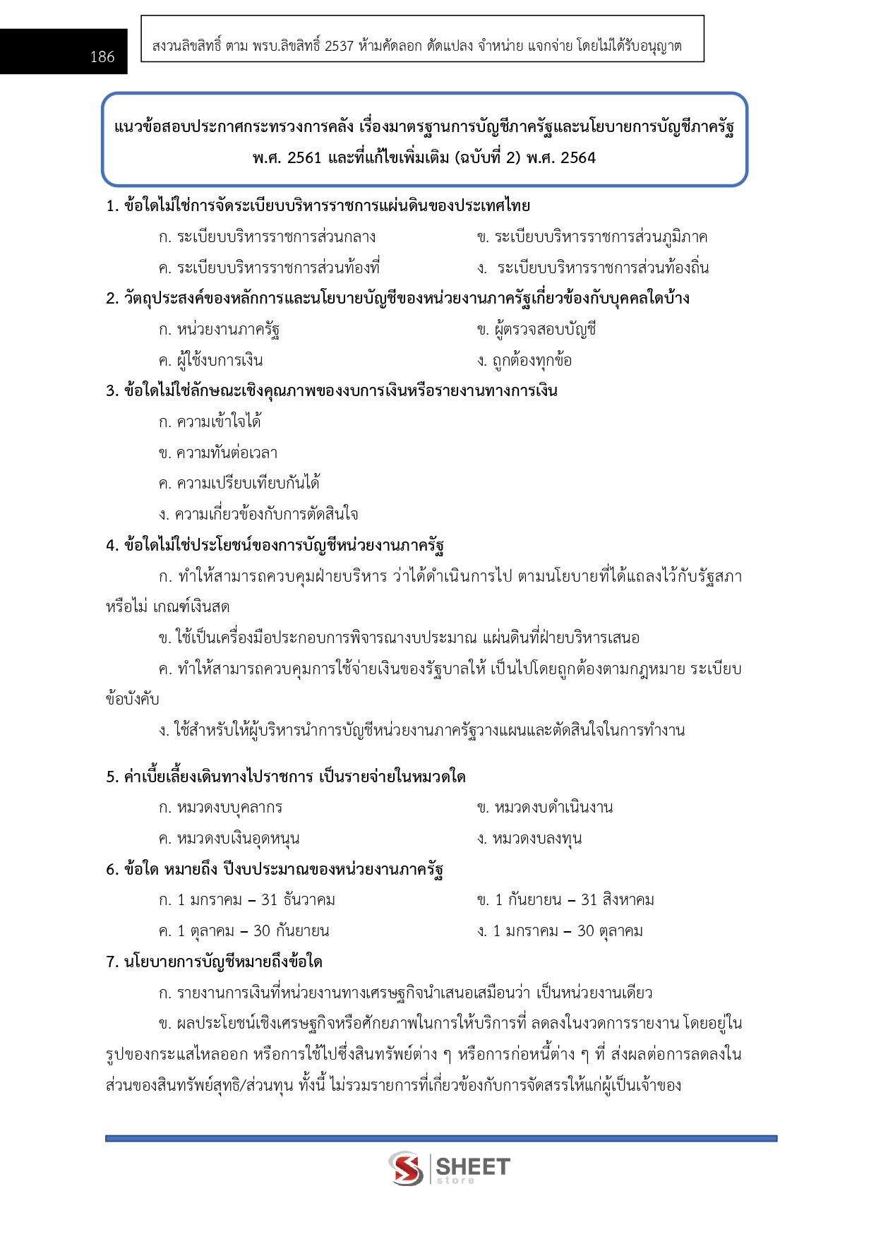 - แนวข้อสอบประกาศกระทรวงการคลัง เรื่อง มาตรฐานการบัญชีภาครัฐและนโยบายการบัญชีภาครัฐ พ.ศ. 2561 และที่แก้ไขเพิ่มเติม (ฉบับที่ 2) พ.ศ. 2564