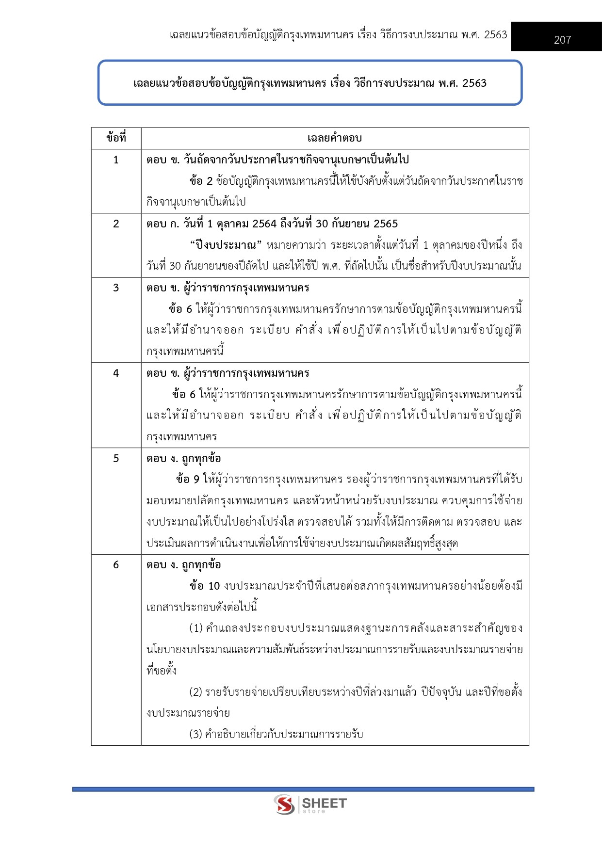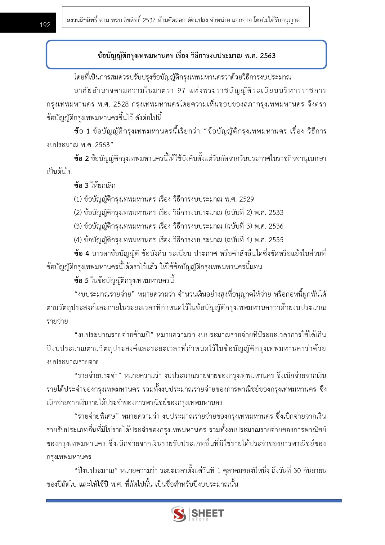 - แนวข้อสอบข้อบัญญัติกรุงเทพมหานคร เรื่อง วิธีการงบประมาณ พ.ศ. 2563