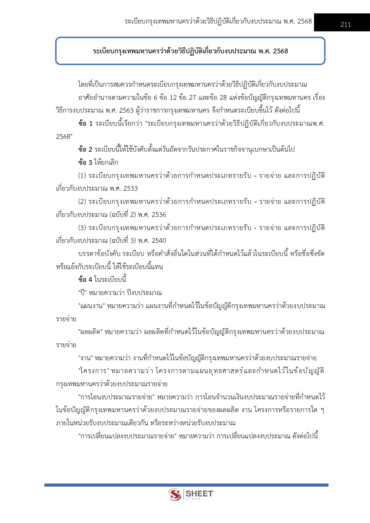 - ระเบียบกรุงเทพมหานครว่าด้วยวิธีปฏิบัติเกี่ยวกับงบประมาณ พ.ศ. 2568