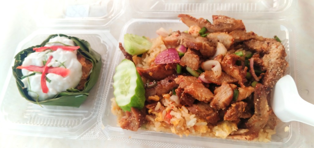 ข้าวผัดยำหมูย่าง + ห่อหมก 🍛🥓🥬