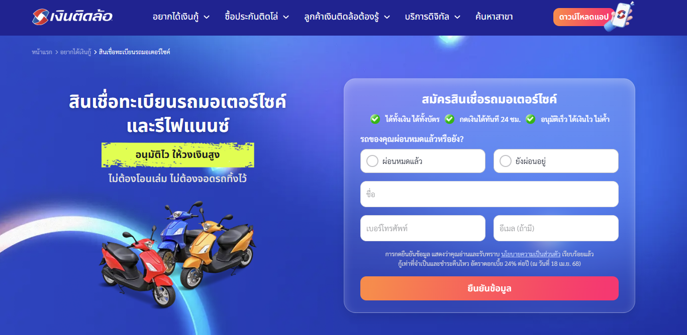 รถมอเตอร์ไซค์ : https://www.tidlor.com/th/autoloan/motorcycle