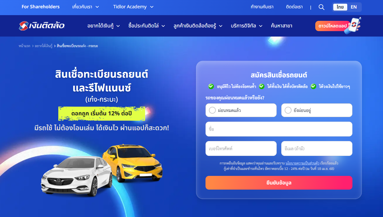 สำหรับรถเก๋ง/กระบะ: https://www.tidlor.com/th/autoloan/car