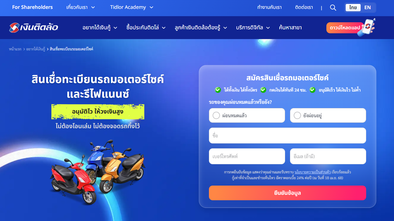 สำหรับมอเตอร์ไซค์: https://www.tidlor.com/th/autoloan/motorcycle