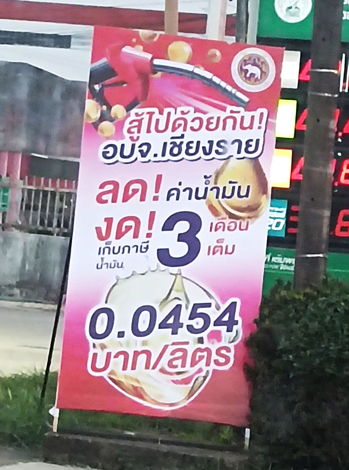เมื่อวานก็เห็นเลย เชียงรายก็เอาบ้างครับ จัดลดภาษีน้ำมัน ที่เก็บเข้าท้องถิ่นลิตรละ 0.045