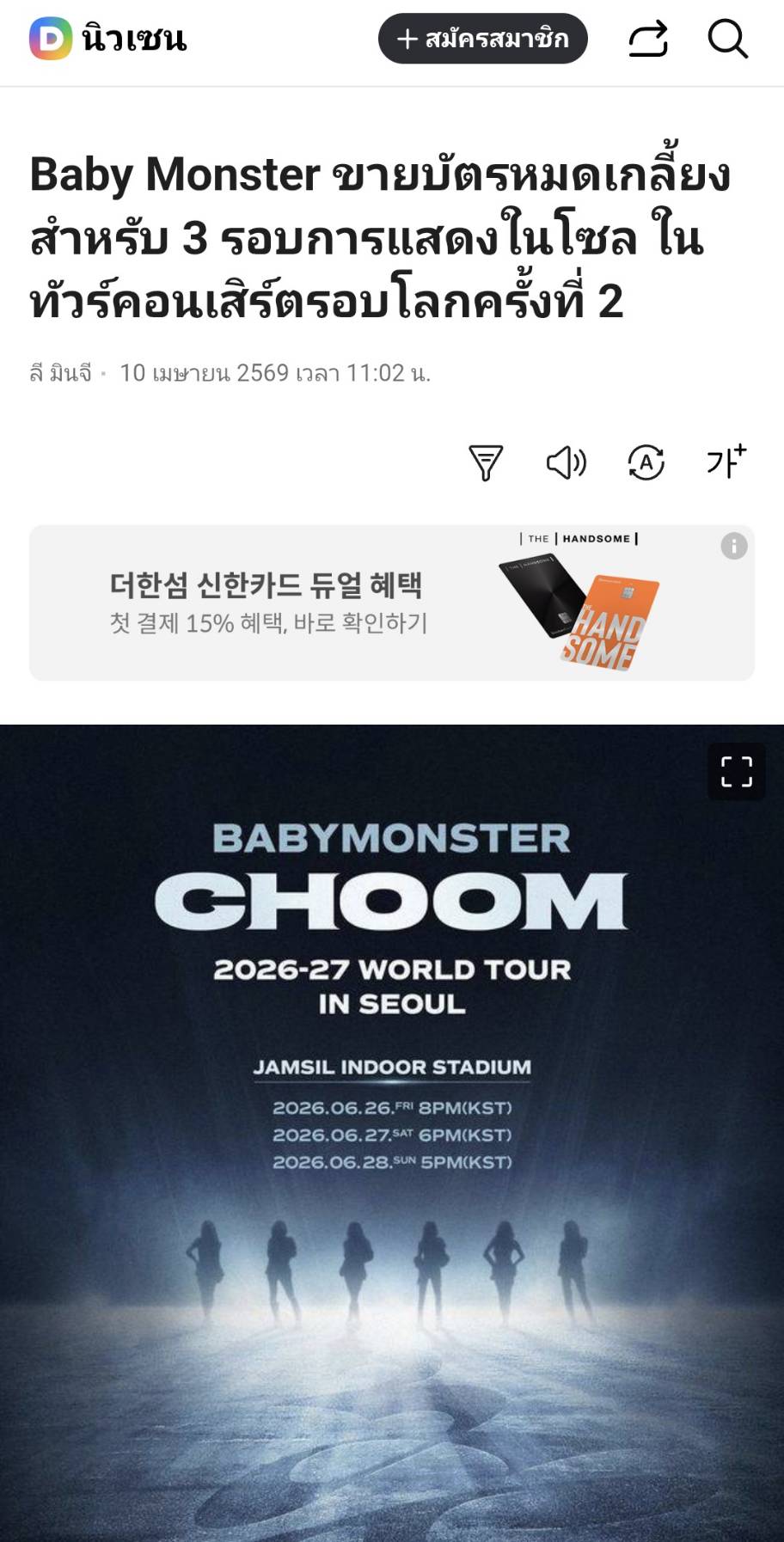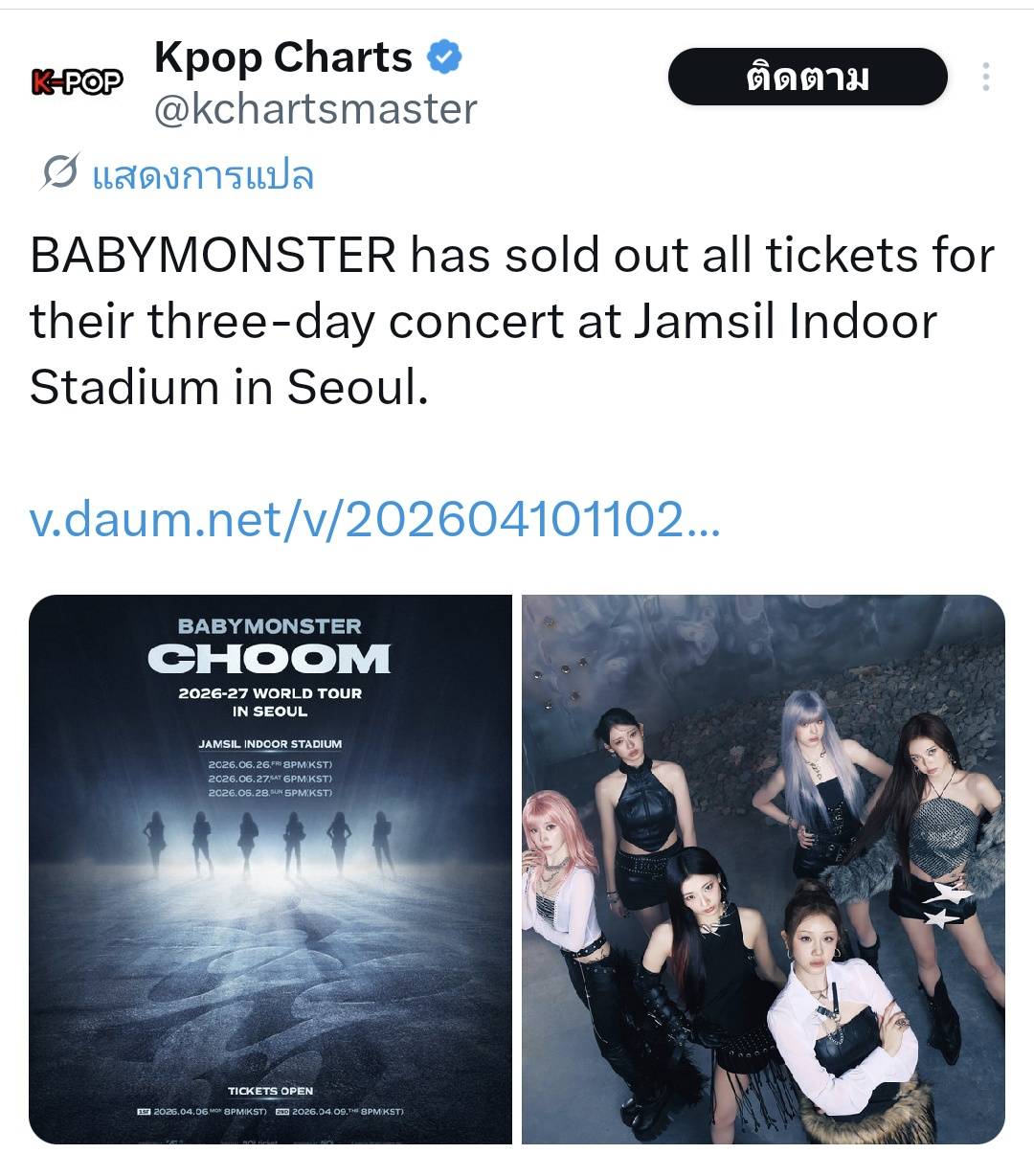 บัตรคอนเสิร์ต BABYMONSTER CHOOM 2nd WORLD TOUR ได้ Sold Out อย่างเป็นทางการเป็นที่เรียบร้อยแล้ว มีบางกระทู้ในเว็บพันทิปกล่าว