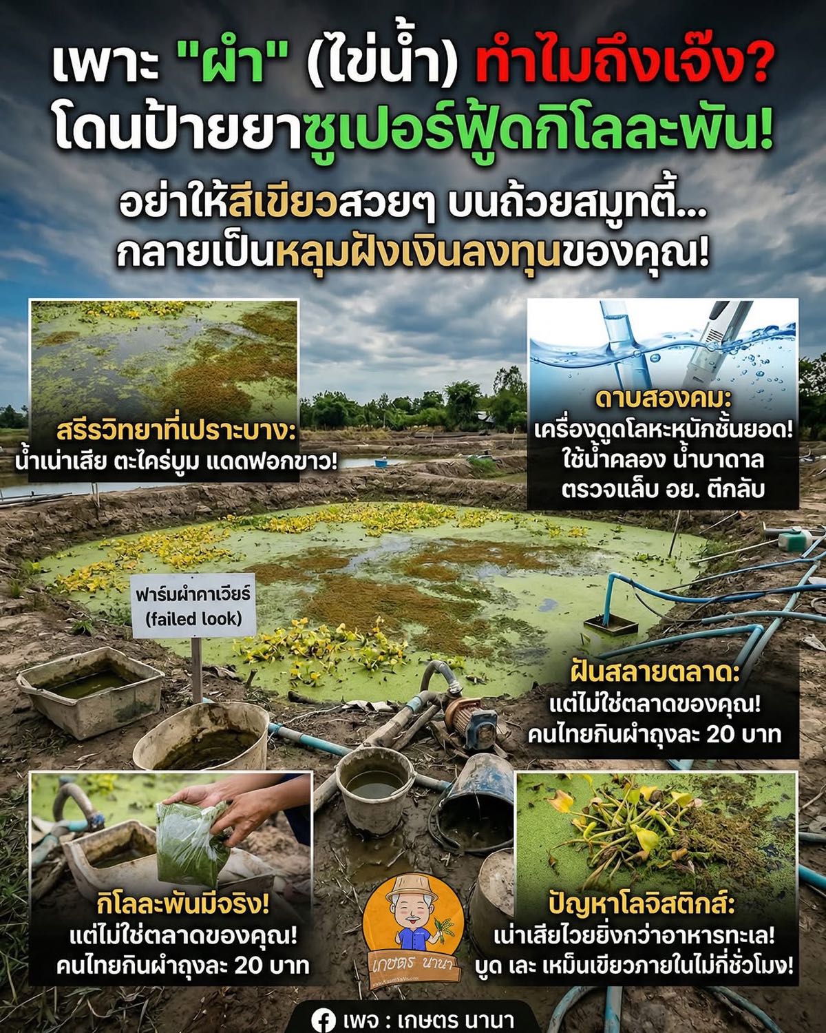 แถวบ้านเพื่อนๆ ในเพจ มีใครเคยโดนป้ายยาให้ลองเพาะผำแล้วเจอน้ำเน่า หรือเพาะได้สวยงามแต่ตักไปขายตลาดนัดแล้วไม่มีคนซื้อบ้างไหมครับ? ใครมีประสบการณ์ตรง หรือรู้วิธีเลี้ยงให้รอด คอมเมนต์มาแชร์ความเจ็บปวดและความรู้ เพื่อเป็นวิทยาทานเตือนสติมือใหม่กันหน่อยครับ แอดมินรออ่านและพร้อมแลกเปลี่ยนมุมมองกันเต็มที่ครับ! 👇
