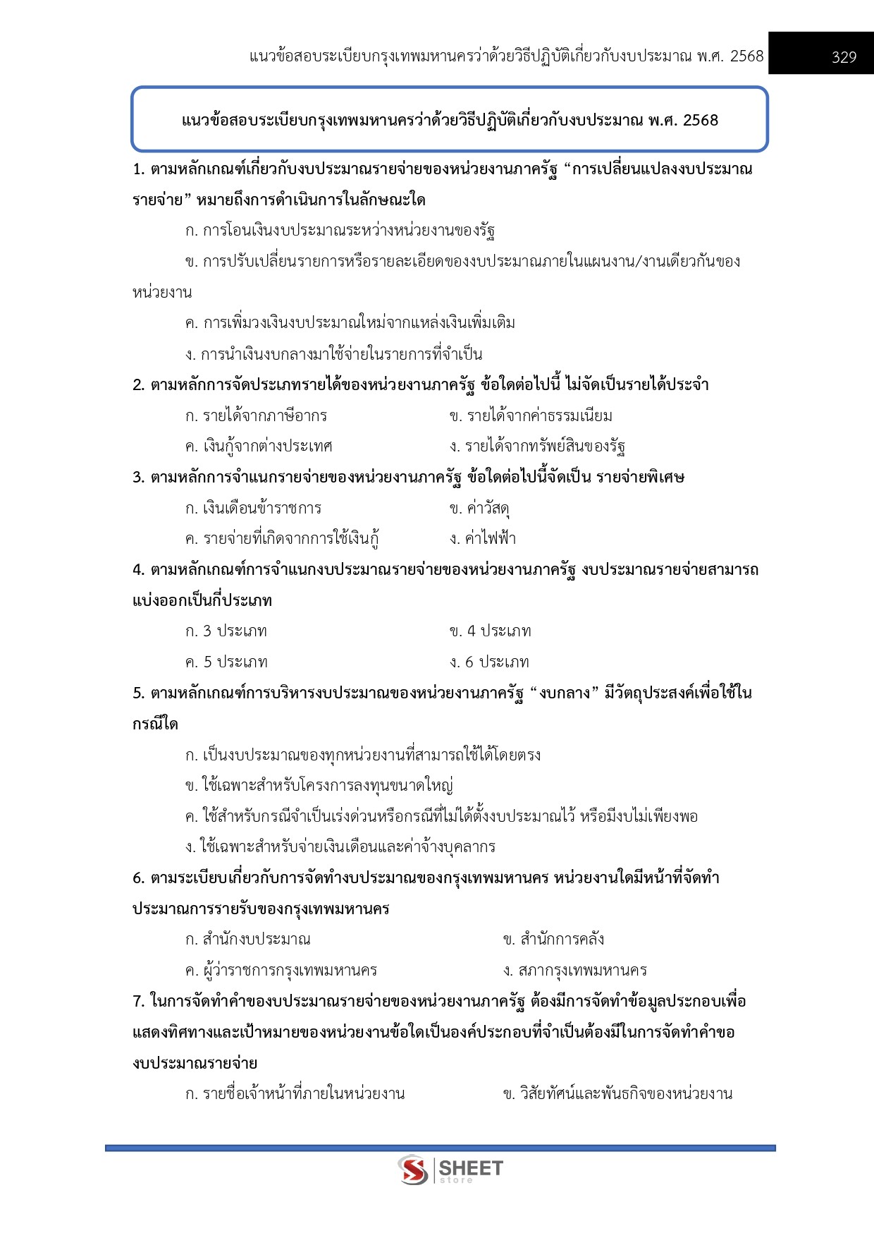 – แนวข้อสอบระเบียบกรุงเทพมหานครว่าด้วยวิธีปฏิบัติเกี่ยวกับงบประมาณ พ.ศ. 2568