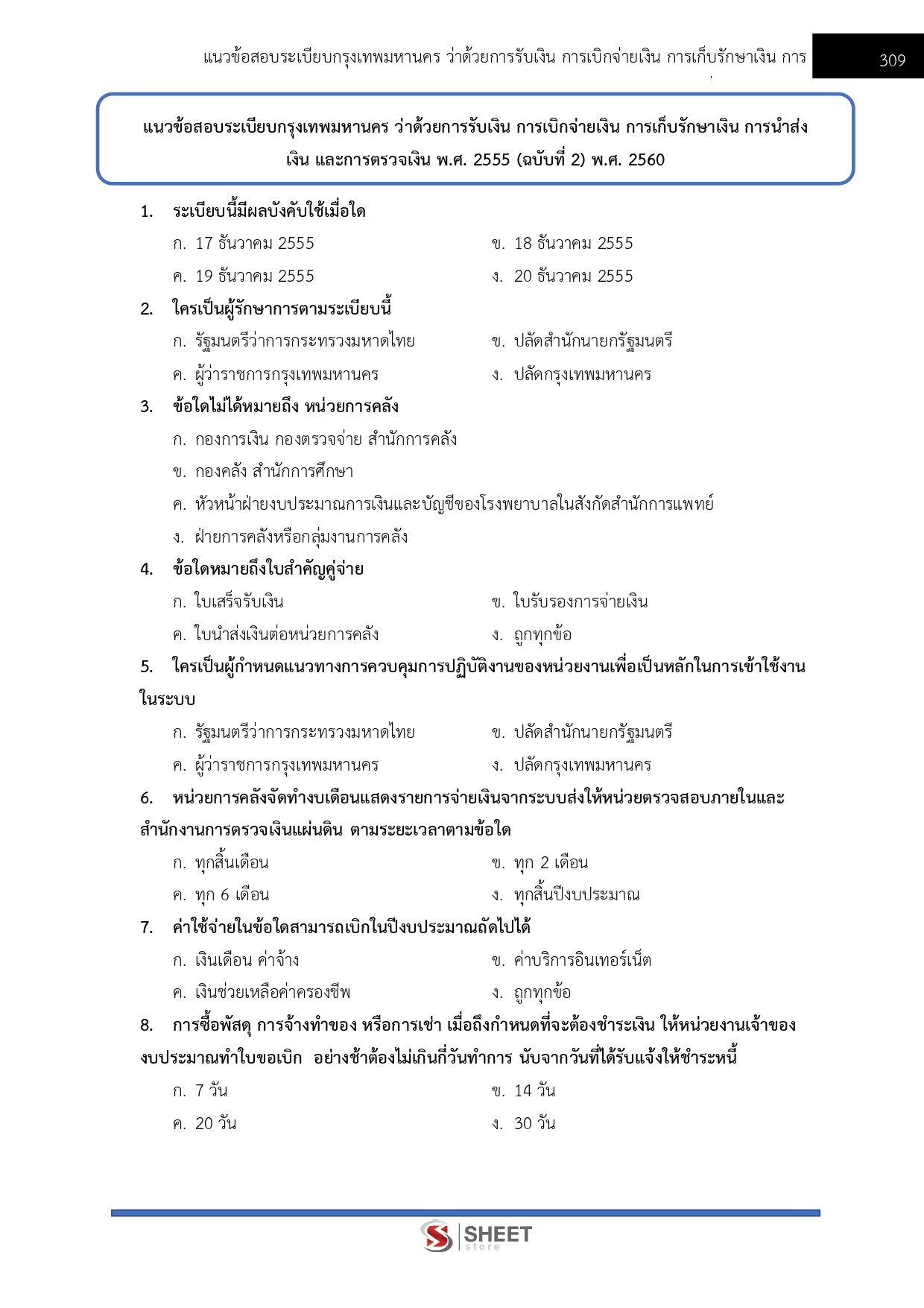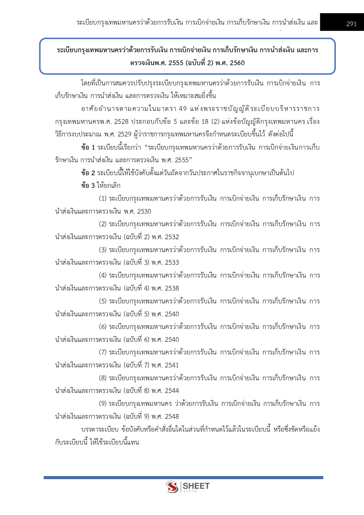 – แนวข้อสอบระเบียบกรุงเทพมหานครว่าด้วยการรับเงิน การเบิกจ่ายเงิน การเก็บรักษาเงิน การนำส่งเงิน และการตรวจเงินพ.ศ. 2555 (ฉบับที่ 2) พ.ศ. 2560