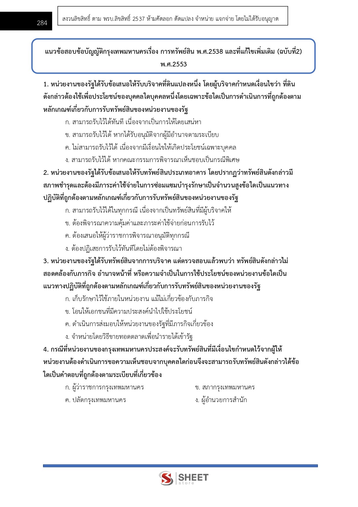 – แนวข้อสอบข้อบัญญัติกรุงเทพมหานคร เรื่อง การทรัพย์สิน พ.ศ. 2538 และที่แก้ไขเพิ่มเติม (ฉบับที่ 2) พ.ศ. 2553