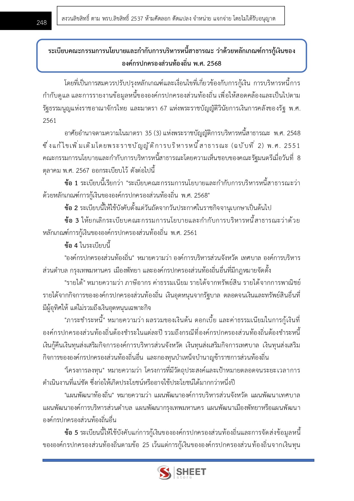 – แนวข้อสอบระเบียบคณะกรรมการนโยบายและกำกับการบริหารหนี้สาธารณะว่าด้วยหลักเกณฑ์การกู้เงินขององค์กรปกครองส่วนท้องถิ่น พ.ศ. 2568