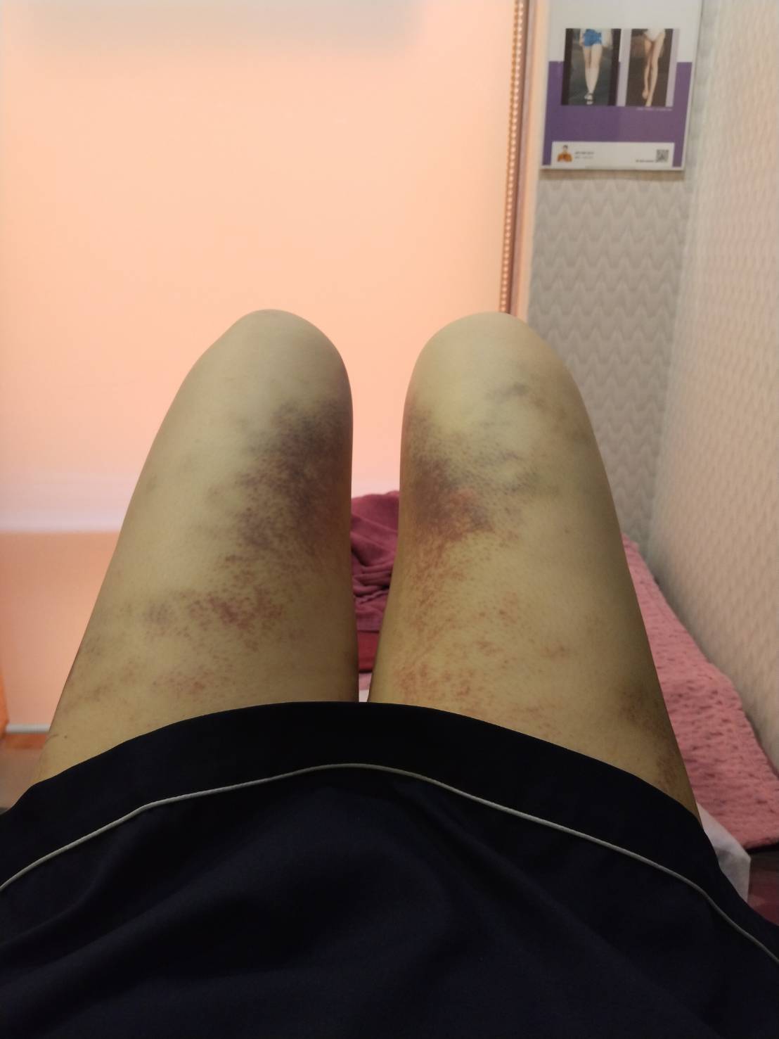 มีบวม ๆ ตึง ๆ ทุกจุดเลยค่ะ โดยเฉพาะต้นขาจะรู้สึกชัดหน่อย แต่ยังเดินได้ ใช้ชีวิตได้ปกติเลยนะ งงมาก55555