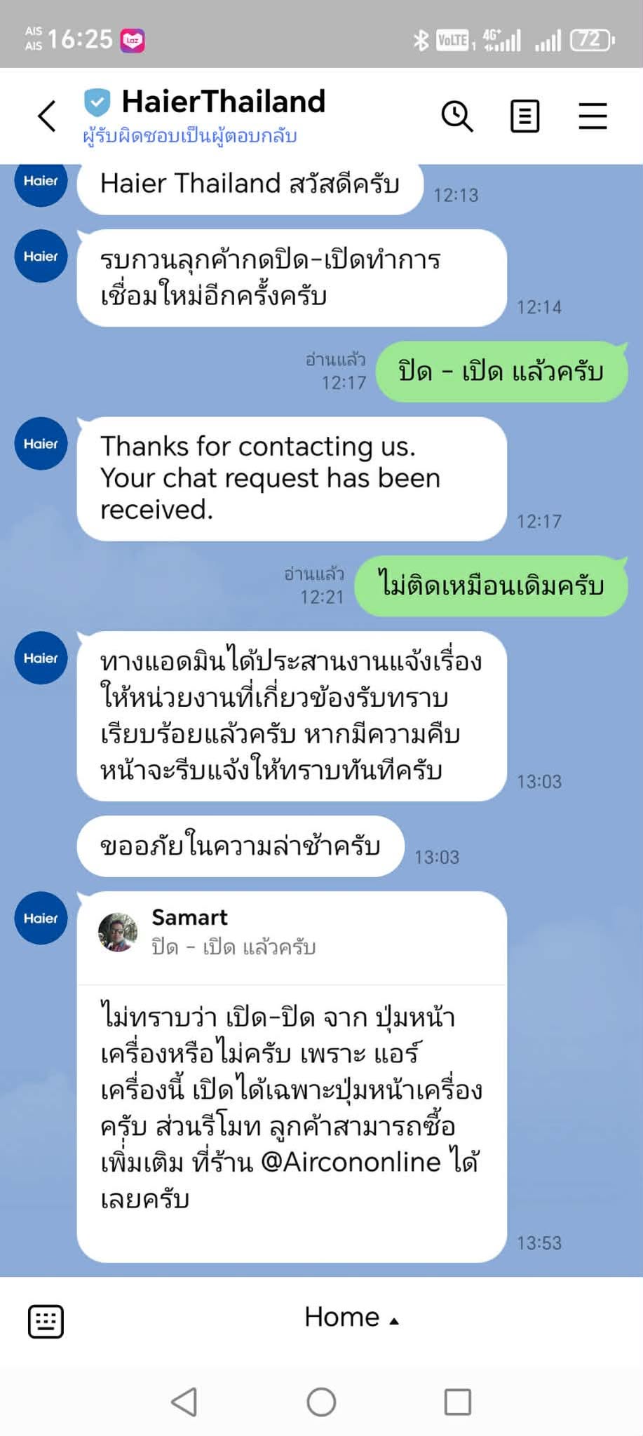 แอร์ Haier แบบผ่อน ผ่อนหมดตอนนี้สั่งงานผ่านแอพ yudee ไม่ได้