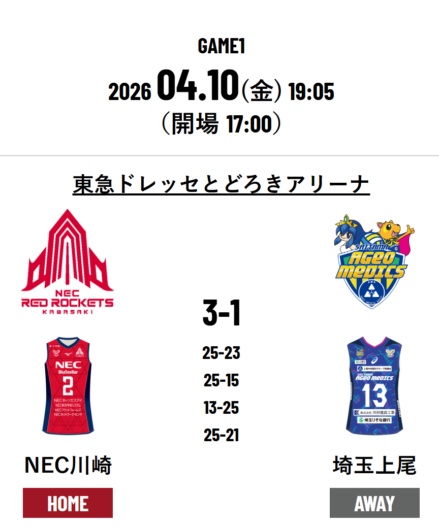 NEC Rec Rockets Kawasaki 3 - 1 Saitama Ageo Medics