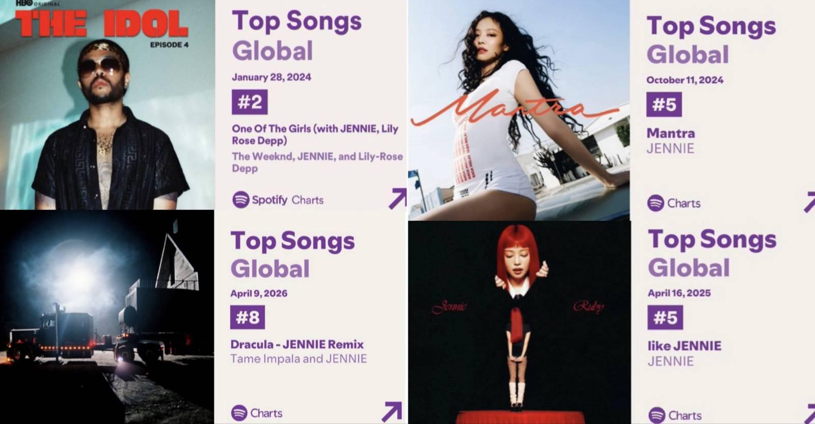 เจนนี่ประสบความสำเร็จในการมีเพลงฮิตติดอันดับท็อป #10 บนชาร์ต Spotify ทั่วโลกถึง 4 ปีติดต่อกัน 👏