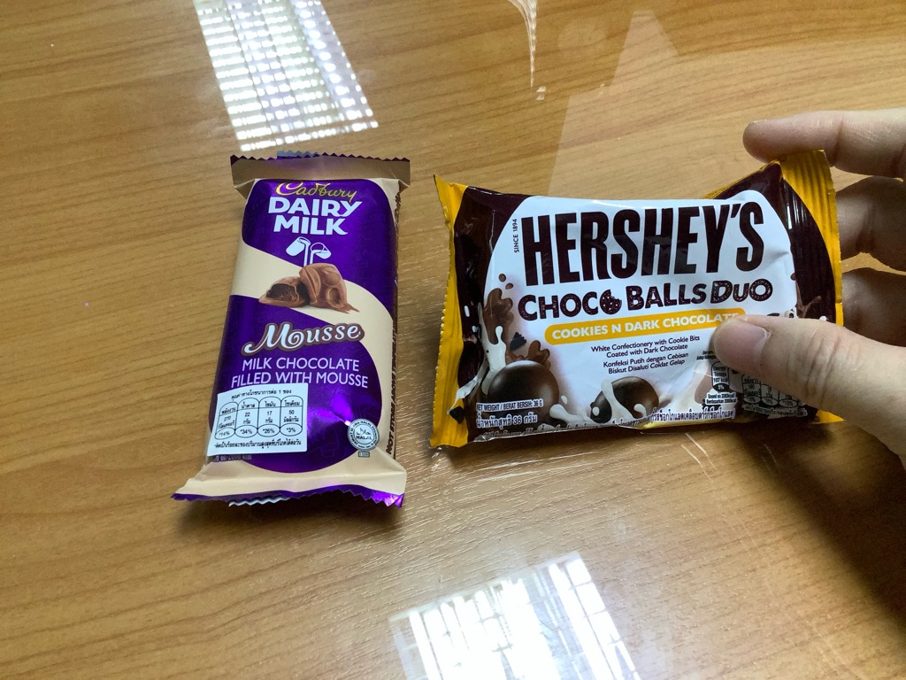 ตอนเย็นกลับมา กลายเป็นช็อกโกแล็ตเหลวไปแล้ว... หยิบขึ้นมานี่ ไม่มีแล้ว ที่เป็นแท่งๆ หรือเป็นเม็ด ๆ ข้างในซองเนี่ย
