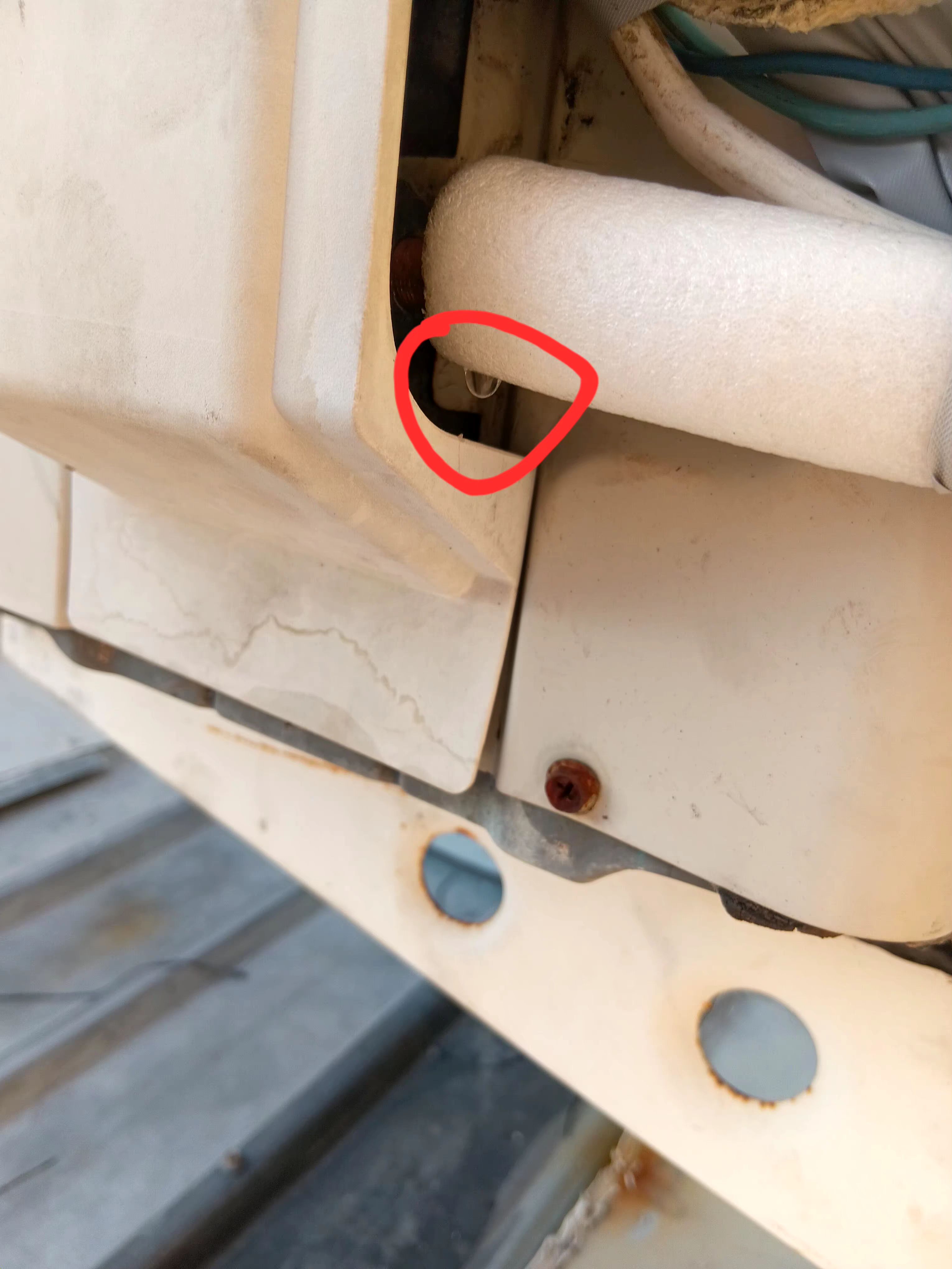 ท่อน้ำยาตู้เย็นมีสะเก็ดน้ำแข็งเกาะ สังเกตดูว่าฉนวนหุ้มสีขาว ปิดไม่มิดเลยทำให้มีสะเก็ดน้ำแข็งหรือเปล่า สงสัยหยดมานานแล้วเพิ่งมาเห็นจนฐานด้านล่างตู้เย็นเป็นสนิม ไปเอาฉนวนอันใหม่มาหุ้มแล้วพันด้วยเทปสายไฟ