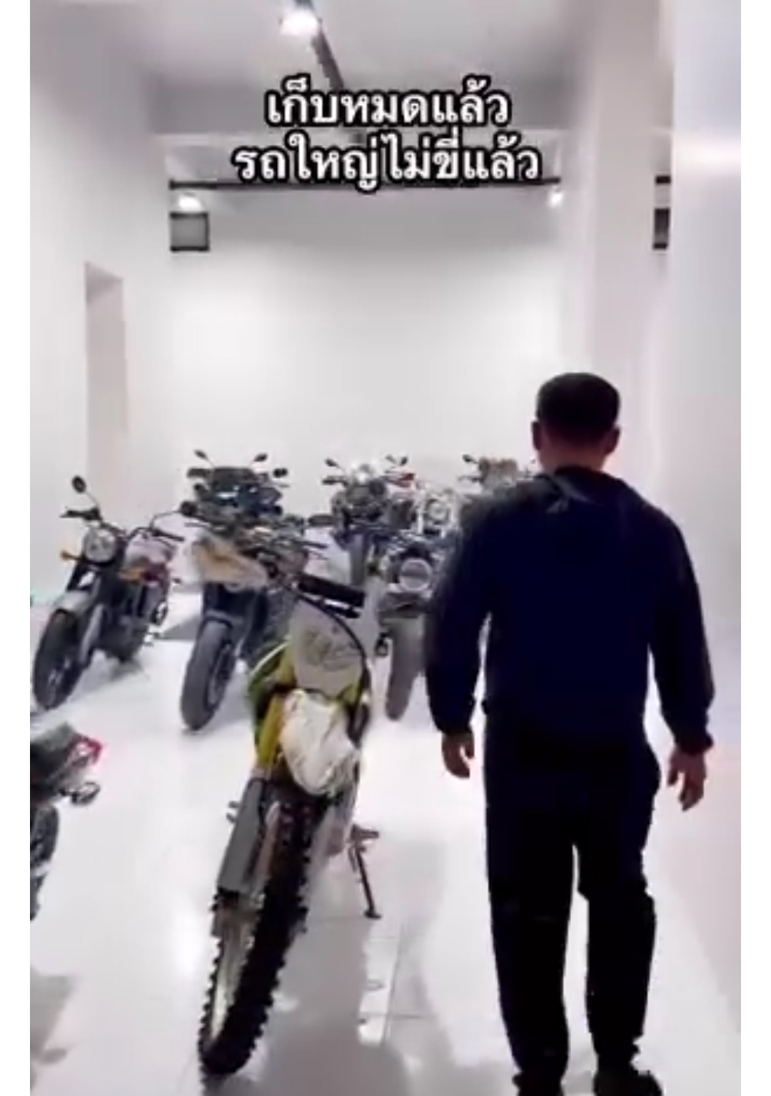 พร้อมเผยแพร่ภาพสถานที่เก็บรถจักรยานยนต์ของตัวเองที่เป็นห้องโถงกว้างและมีรถจักรยานยนต์ถูกจอดเก็บเอาไว้เป็นสิบๆคัน และระบุว่านี่เป็นเพียงรถจักรยานยนต์ที่มีบางส่วนเท่านั้น เบื้องต้นประกอบด้วยรถจักรยานยนต์ที่ใช้ขับขี่ทั่วไปและเป็นรถคันแรกสมัยยังยากจน