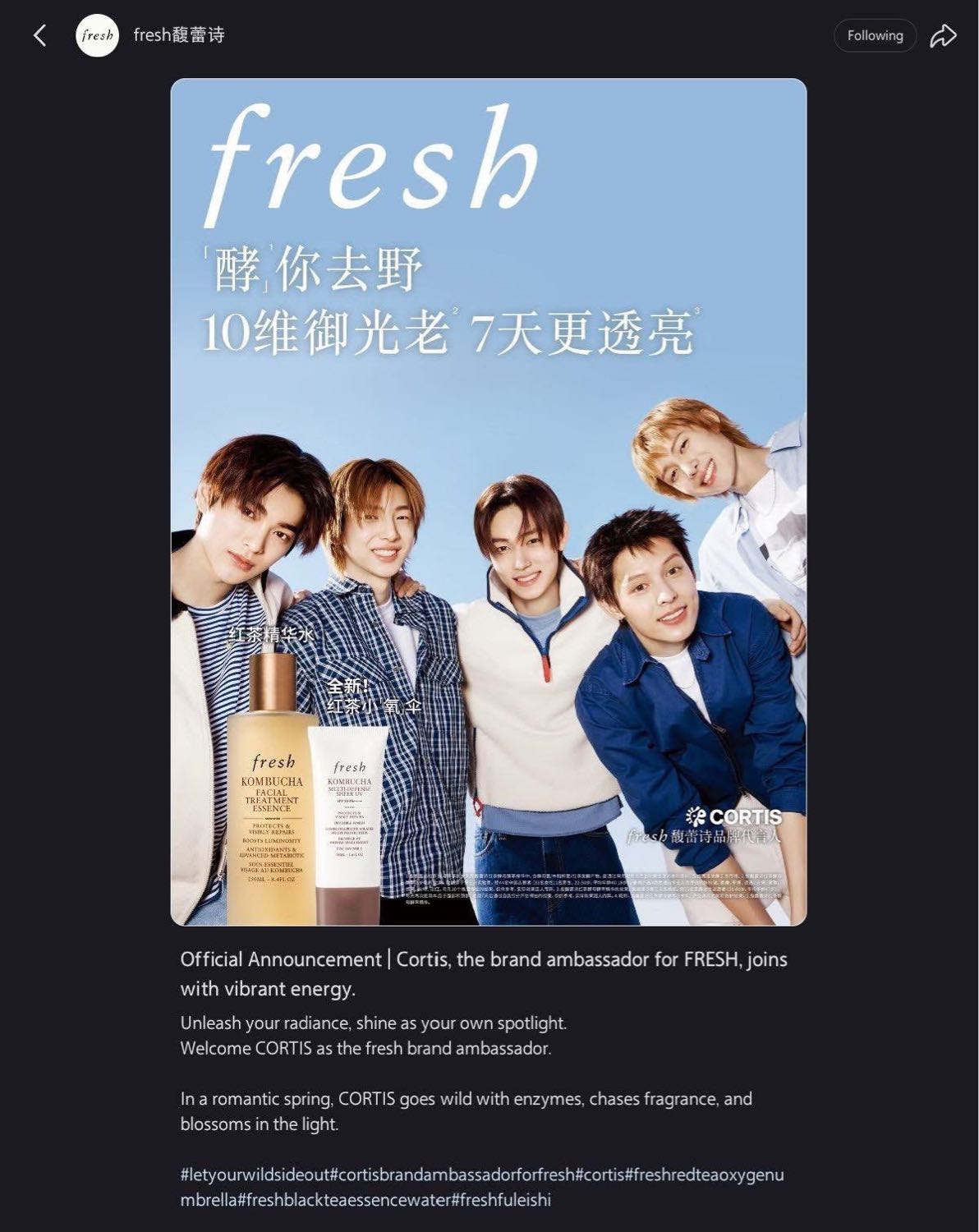 CORTIS ขึ้นแท่น Brand Ambassador คนใหม่ ของแบรนด์สกินแคร์ FRESH 🎉