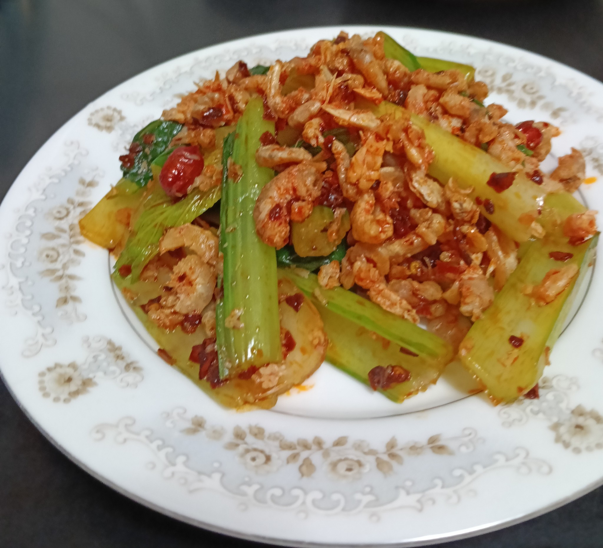 เริ่มจากล้างกุ้งแห้ง ล้างผัก ให้สะอาด ลวกน้ำให้สุก คลุกๆด้วยพริกผัดน้ำมัน ออกมาหน้าตาดีใช้ได้เลย น่ากิน ชิมๆๆดู อื้อหือออออออ อร่อยมาก 😋😁😋