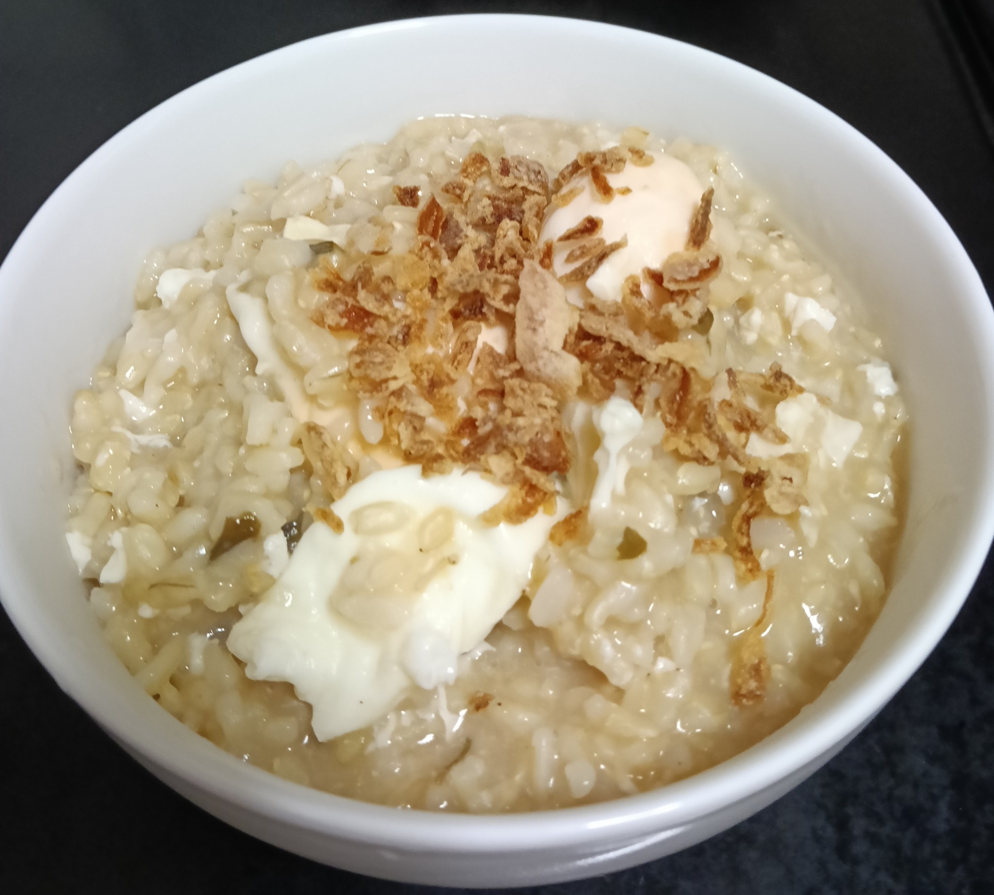 ข้าวต้มแบบน้ำน้อยๆ รสชาติเข้มข้น ใส่ผงน้ำซุปปลาหอมๆ