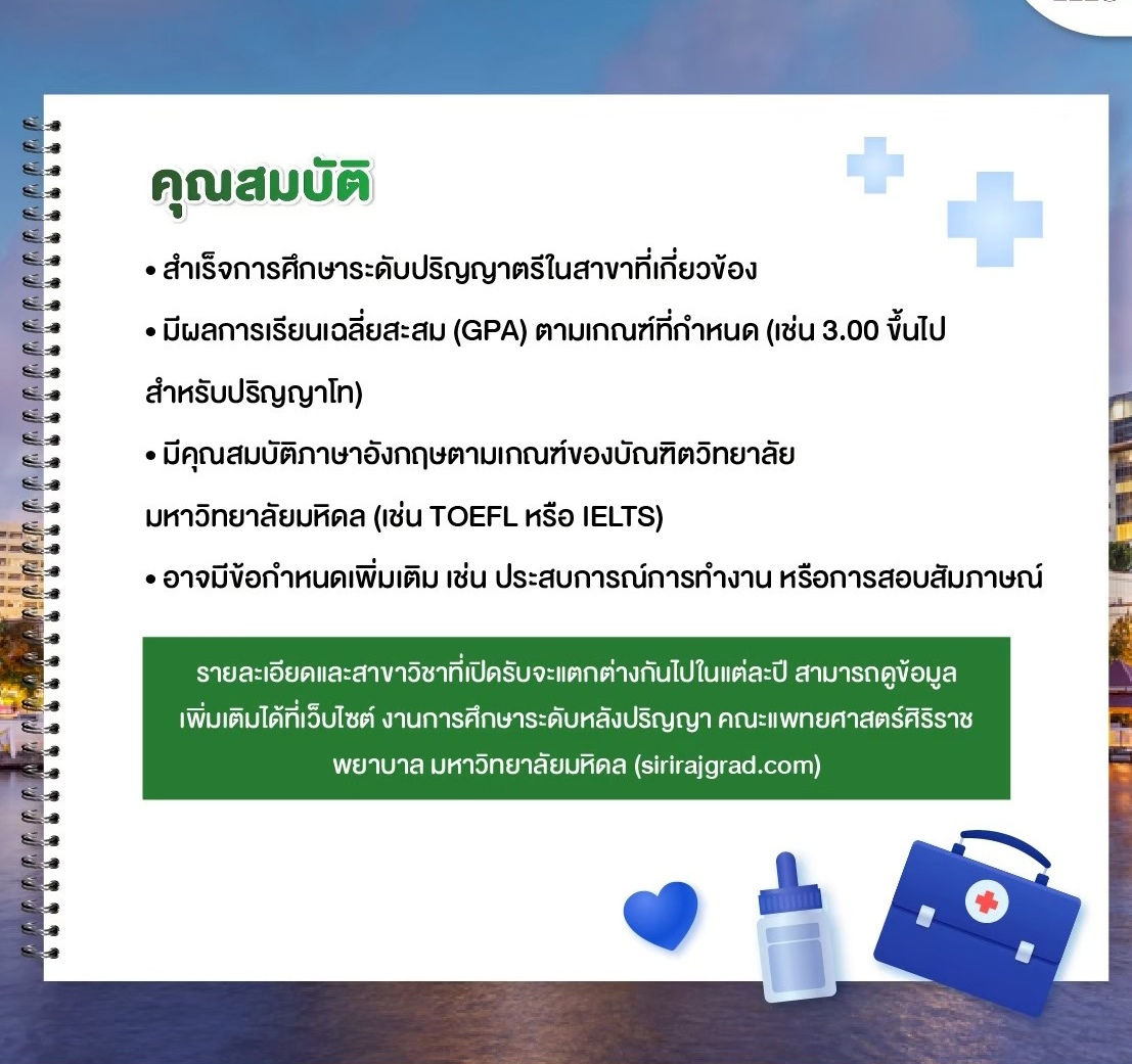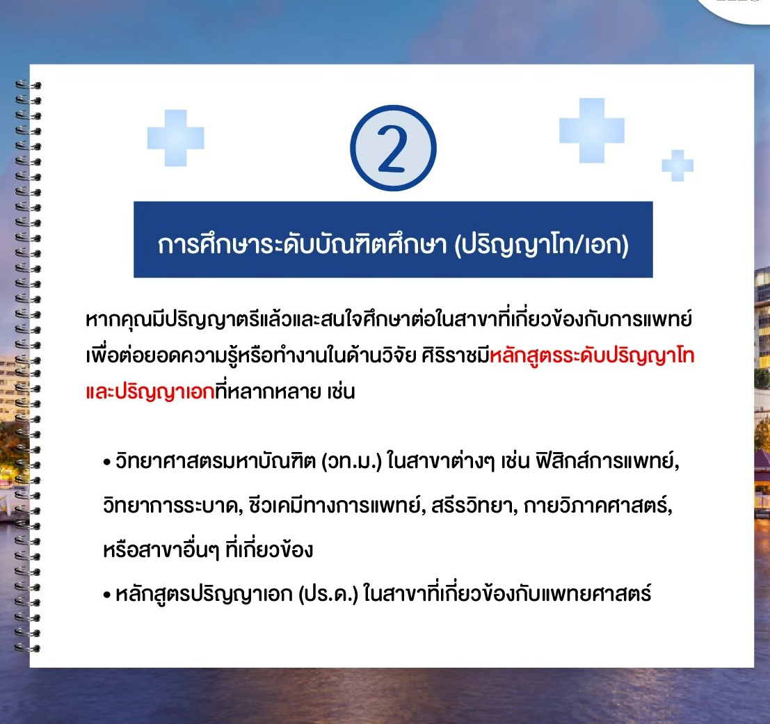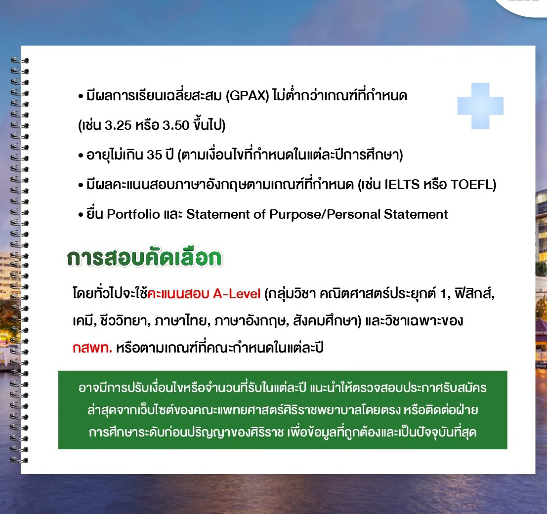 คณะแพทยศาสตร์ศิริราชพยาบาล ม.มหิดล เปิดโอกาสให้ผู้ที่จบปริญญาตรี (ไม่จำกัดสาขา!)