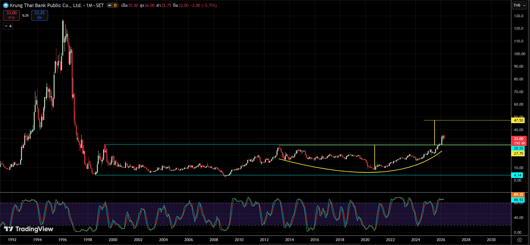 KTB ขึ้นมาแบบ ไร้แนวต้าน เป้าน่าจะ = ความสูงของก้นกะทะ หรือไม่