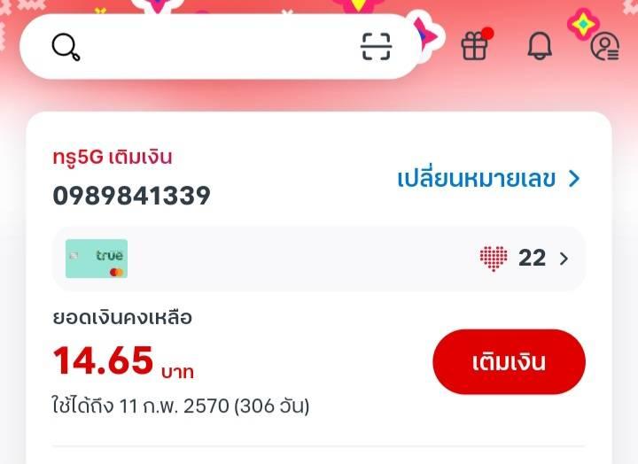 พอดีวันนี้เติมเงินไป 11:37 น. จำนวน 20 บาท ปรากฎว่าเมื่อเวลา 13:30 น. มาดูยอดใน App True ยอดเงินคงเหลือ 14:65 บาท หายไปจำนวน 5:35 บาทครับ