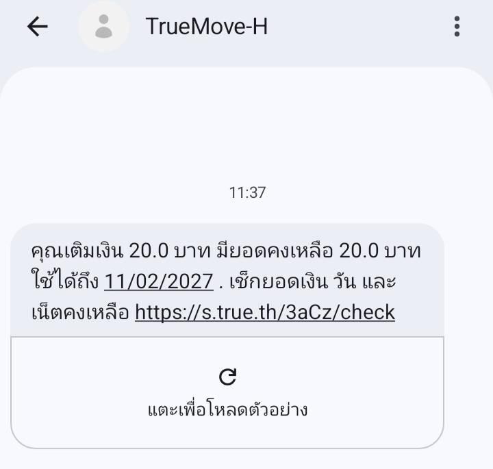 1. ภาพsms แจ้งการเติมเงิน